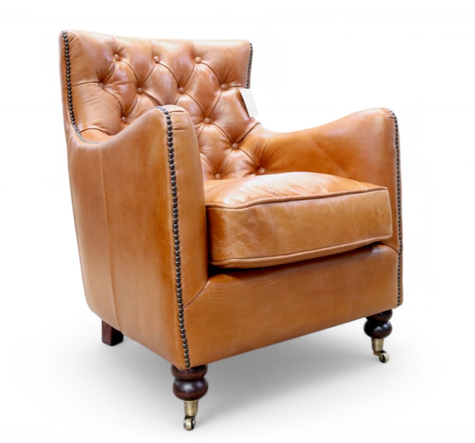 From the UK s leading vintage leather furniture Ancient Mariner Buttoned Back Vintage High Back Distressed Tan Leather Armchair Available in a wide range of vintage distressed colours (Brown, Black, Tobacco, Rouge, Tan) - Exclusive Vintage Collection - Best Price Promise - Distressed Vintage Real Leather - Hand Studded & Buttoned - Hand Made - FREE Swatches Available - Hand Crafted Furniture Dimensions (CM) Armchair L 68 X W 68 X H 87 Apprx. What is Vintage Distressed Leather? The Vintage Distressed Leather Collection is meticulously crafted, perfectly preserves every inch of natural ageing marks, revealing not only the story of time but also the unique classic charm. Each piece is a Limited Edition Worldwide, exceptionally unique, showcasing your distinct taste and status symbol. Also available in the following Ancient Mariner Buttoned Back Chair Vintage Brown Leather: (*1) We understand that purchasing furniture is a household decision. Therefo