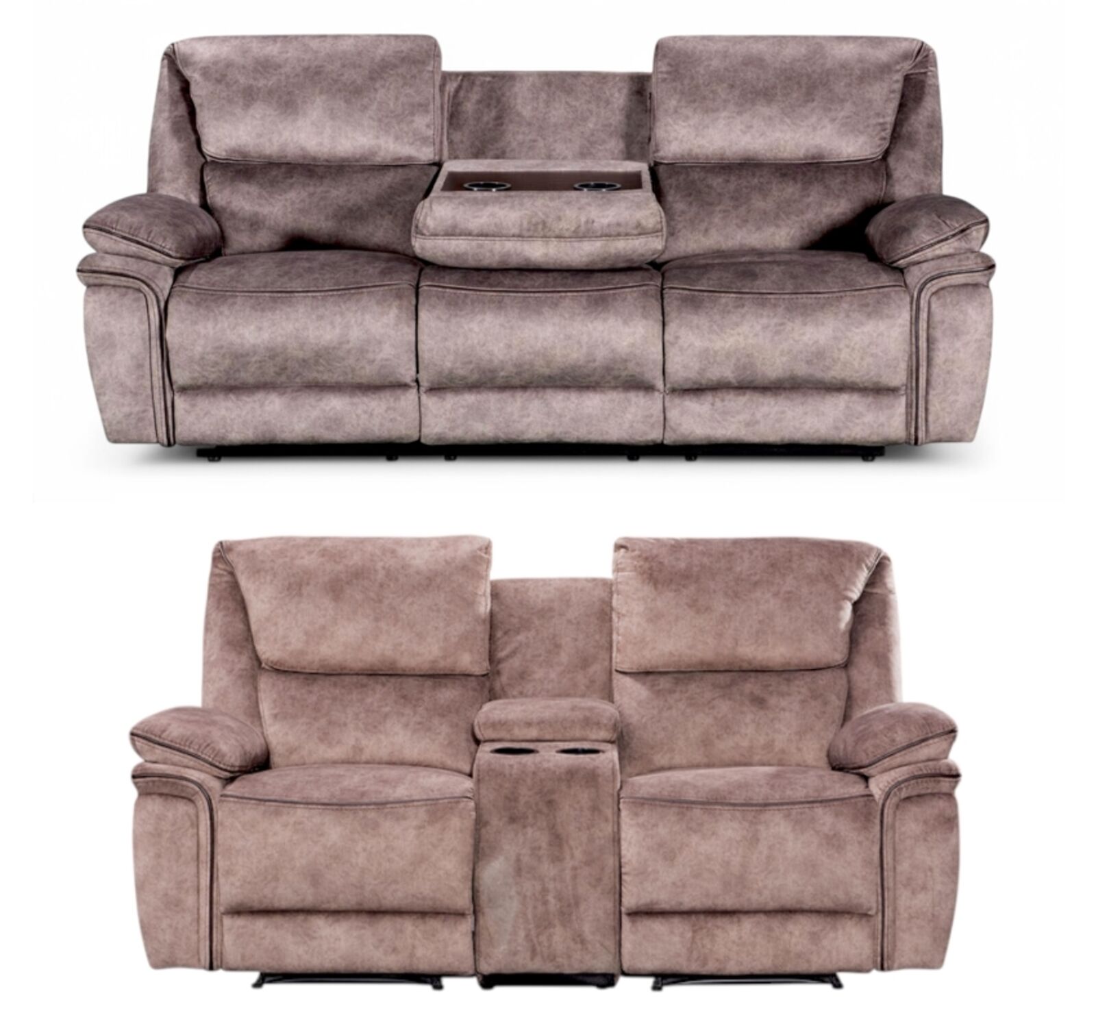 Brooklyn 3 2 Seater Reclining Cinema Console Sofa Suite Taupe Fabric