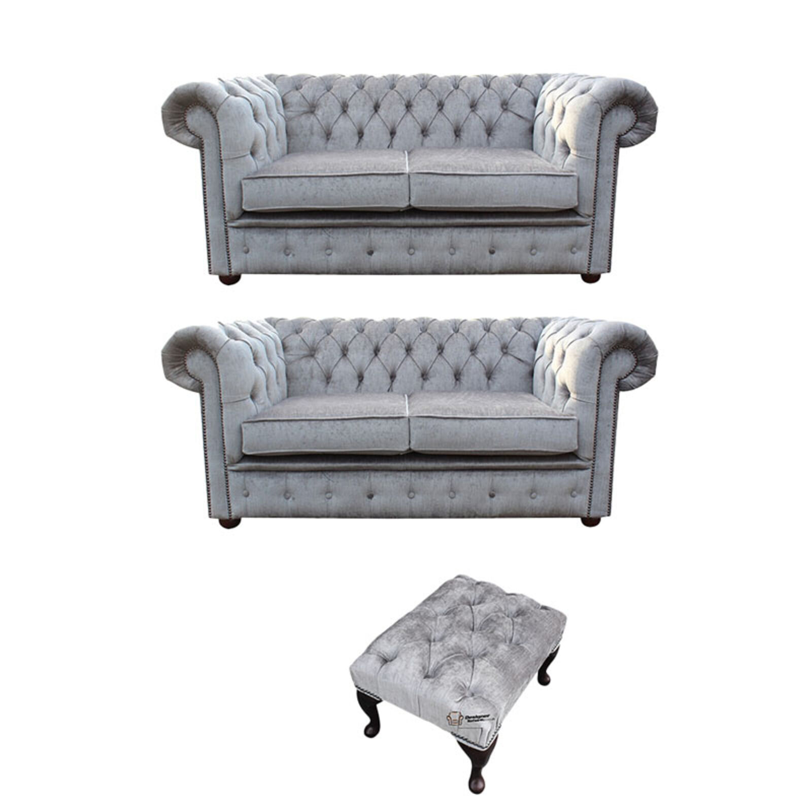 Chesterfield 2 Seater 2 Seater Footstool Settee Perla Illusions Velvet Sofa Suite Offer