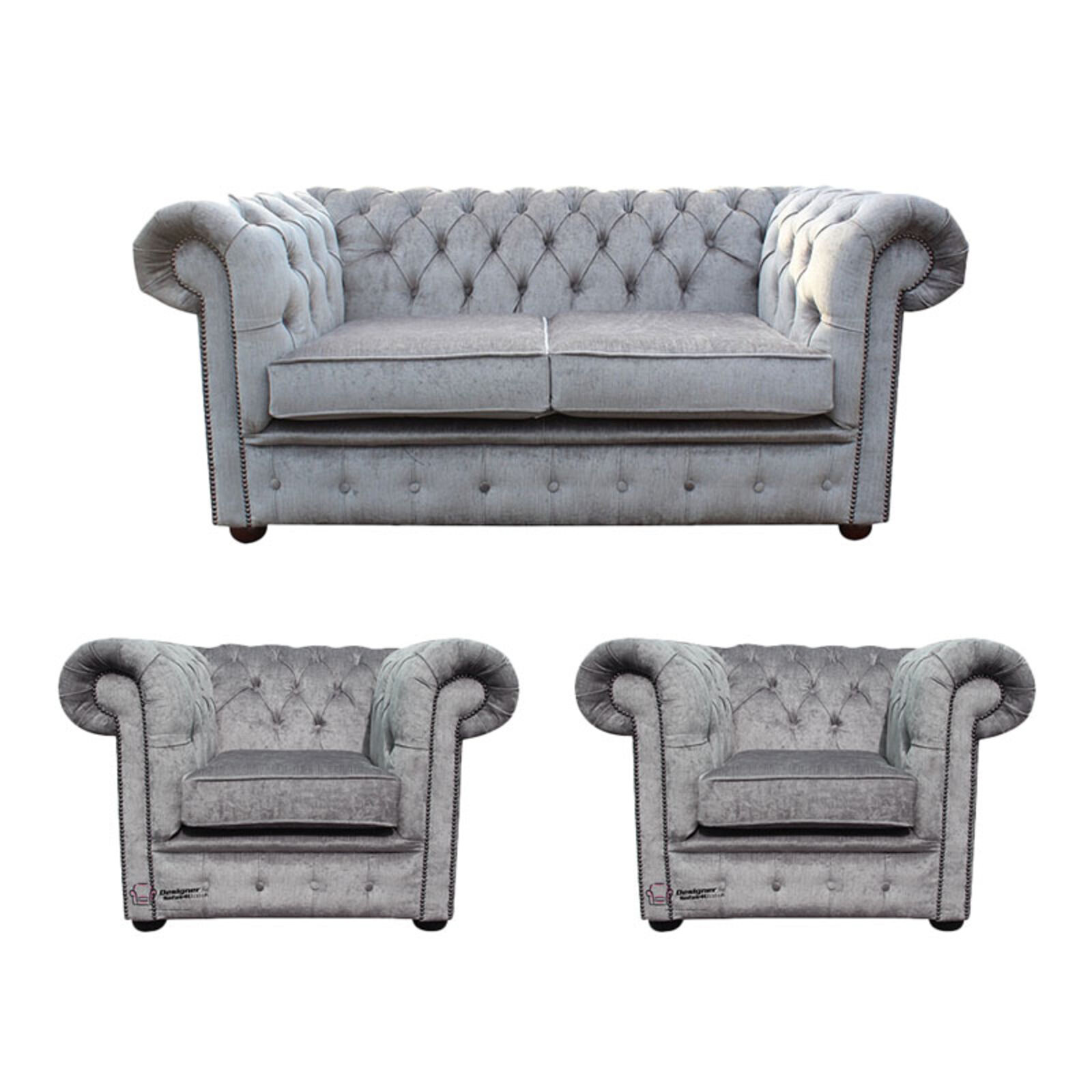 Chesterfield 2 Seater 2 X Club Chairs Perla Illusions Velvet Sofa Suite Offer