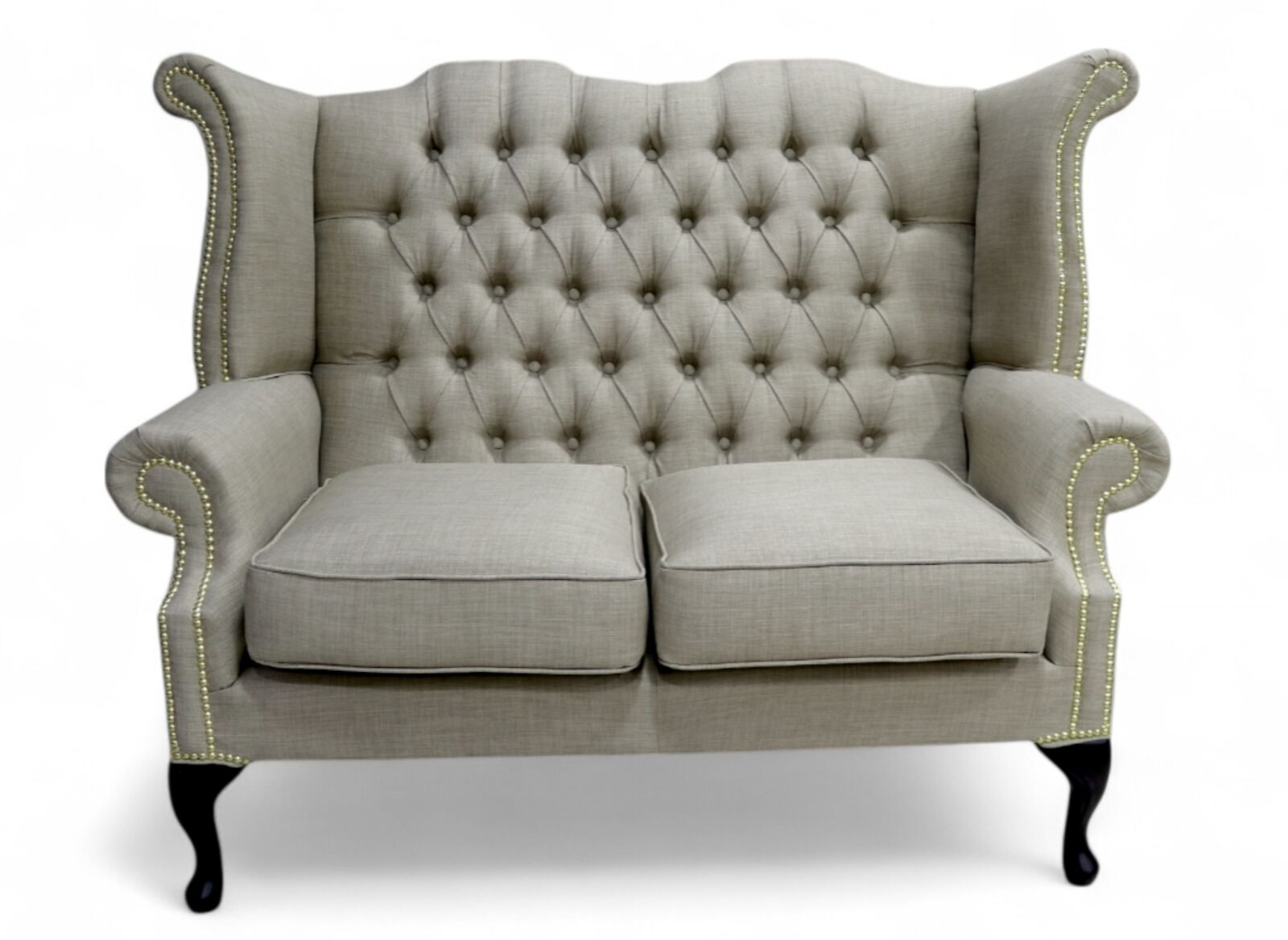 Chesterfield 2 Seater Queen Anne High Back Wing Sofa Charles Fudge Linen Fabric