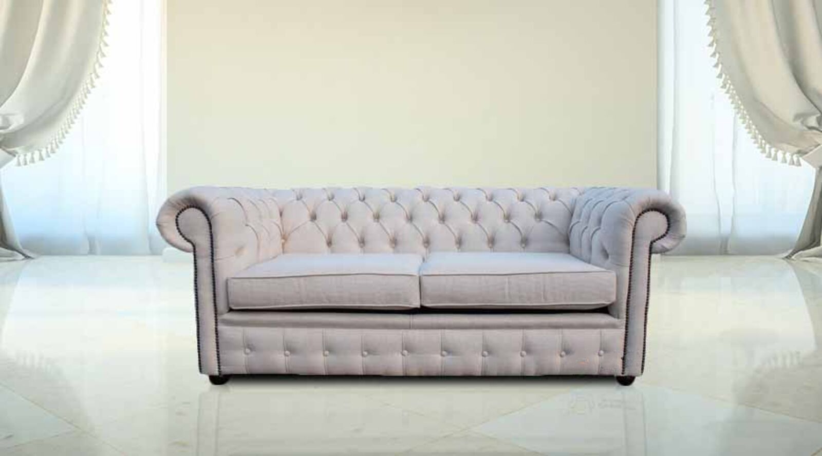 Chesterfield 2 Seater Settee Zoe Plain Parchment Fabric Sofa Offer