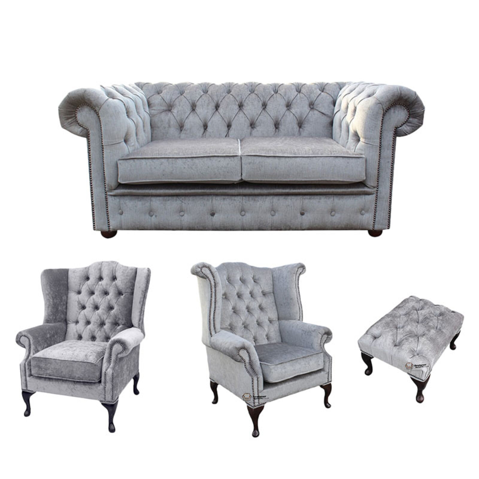 Our review of the Chesterfield 2 Seater Sofa 1 X Mallory Wing Chair 1 X Queen Anne Wing Chair Footstool Harmony Charcoal Velvet Sofa Suite Offer