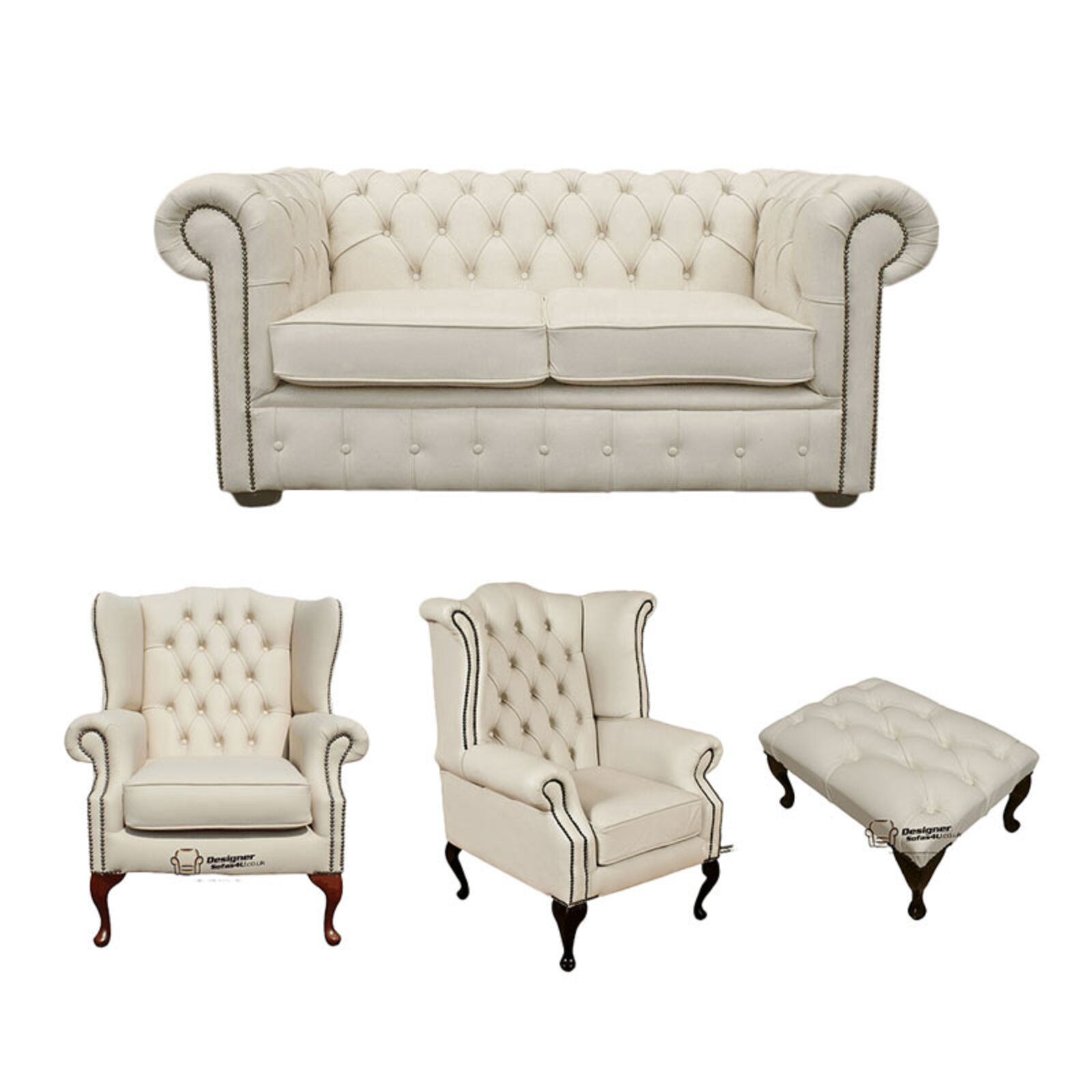 Chesterfield 2 Seater Sofa 1 X Mallory Wing Chair 1 X Queen Anne Wing Chair Footstool Leather Sofa Suite Offer Ivory