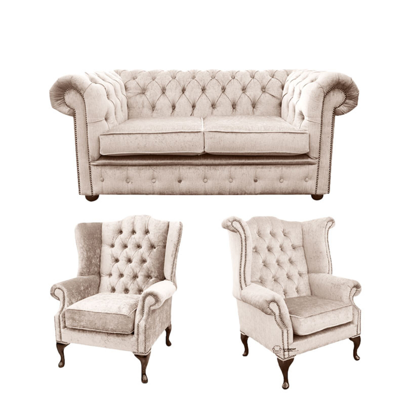 Chesterfield 2 Seater Sofa 1 X Mallory Wing Chair 1 X Queen Anne Wing Chair Harmony Ivory Velvet Sofa Suite Offer