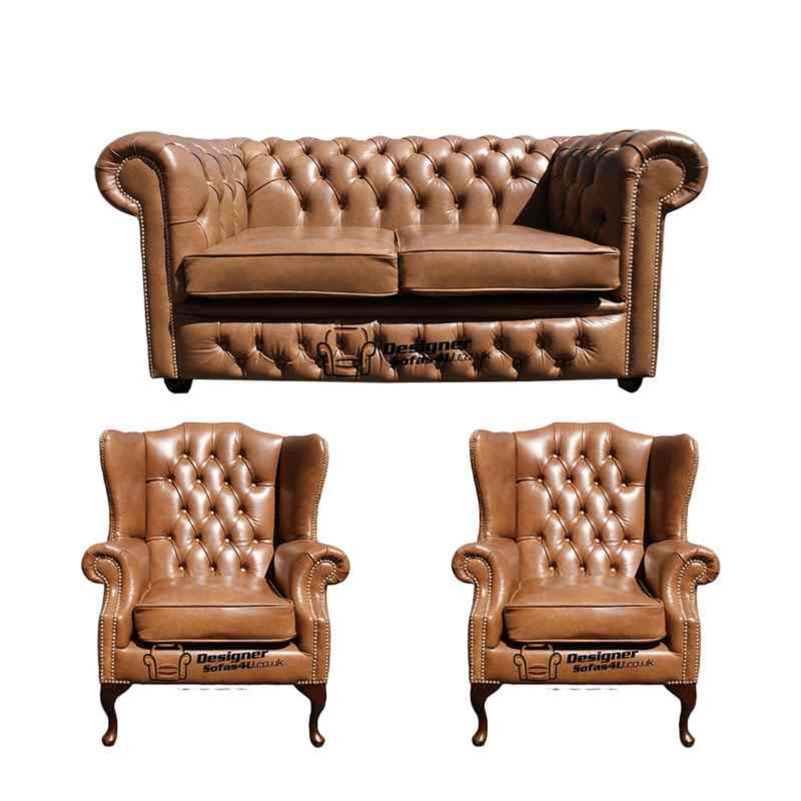 We think you would be hard pushed to find something better than this Chesterfield 2 Seater Sofa 2 X Mallory Wing Chairs Old English Tan Leather Sofa Offer!
