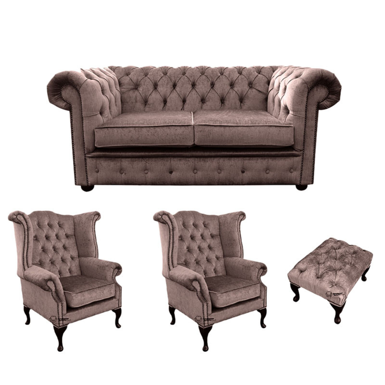 Chesterfield 2 Seater Sofa 2 X Queen Anne Wing Chairs Footstool Harmony Charcoal Velvet Sofa Suite Offer