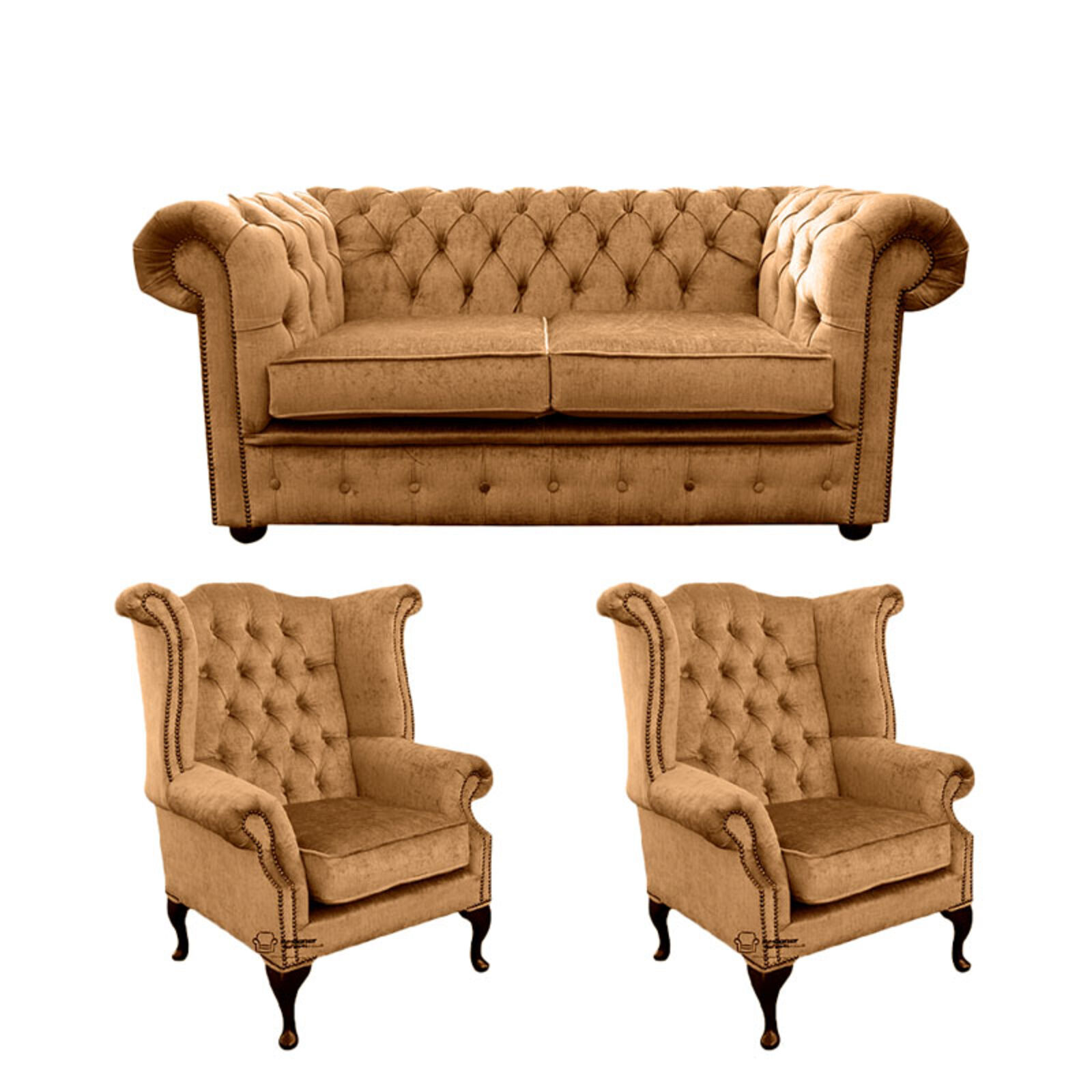 Chesterfield 2 Seater Sofa 2 X Queen Anne Wing Chairs Harmony Gold Velvet Sofa Suite Offer