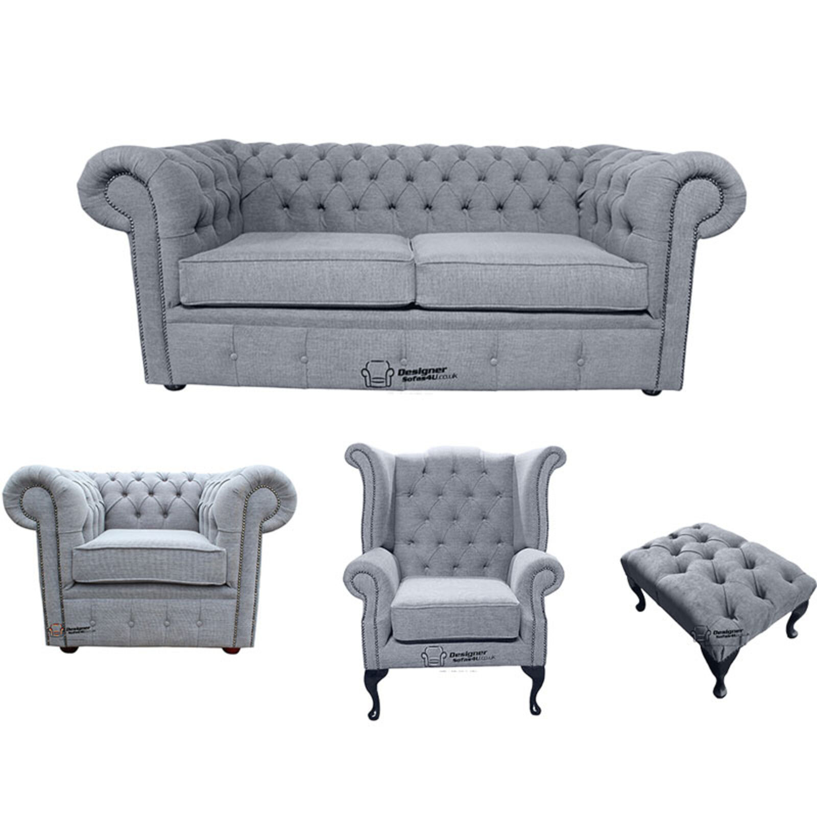 Chesterfield 2 Seater Sofa Club Chair Queen Anne Chair Footstool Verity Plain Steel Fabric Sofa Suite Offer