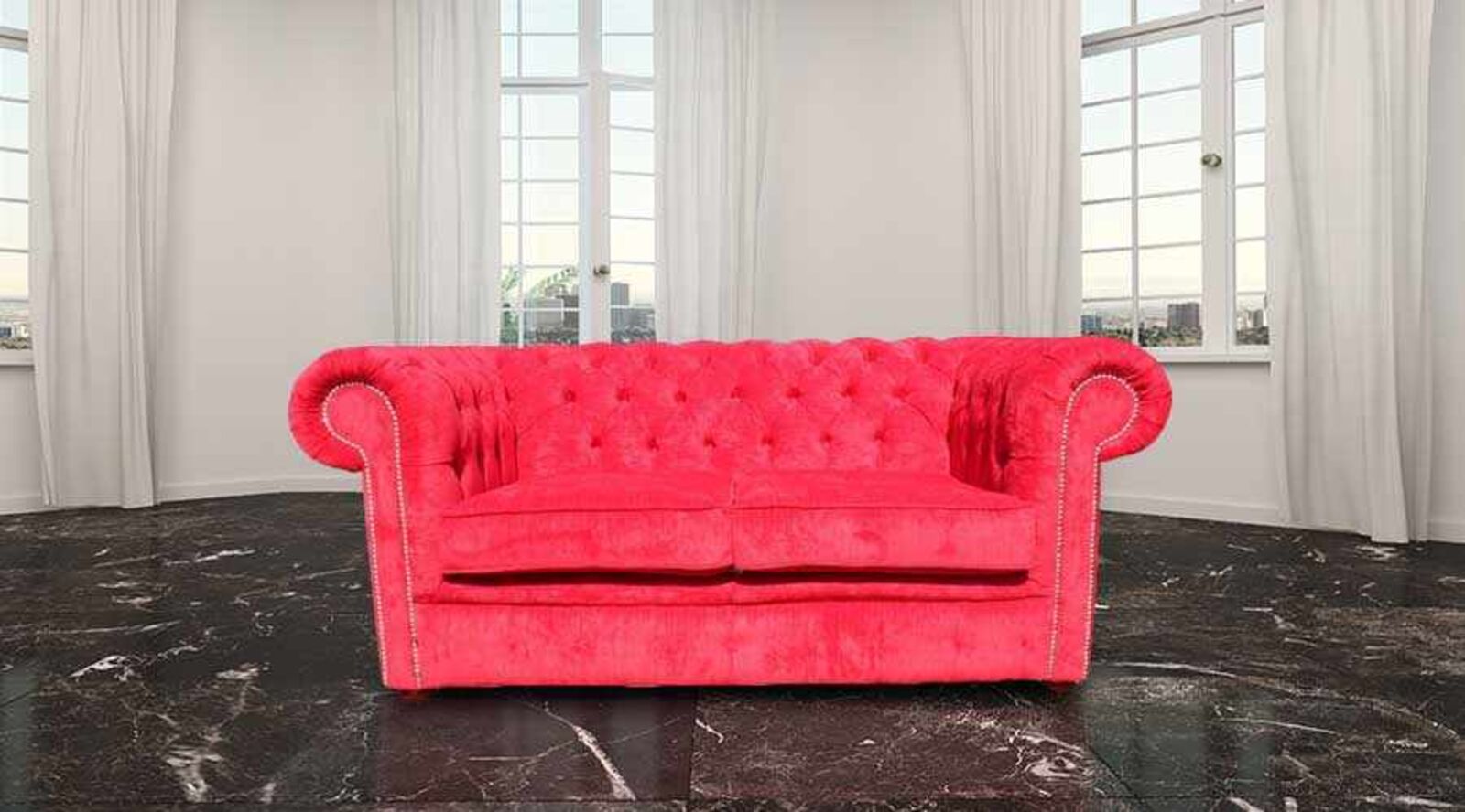 Chesterfield 2 Seater Sofa Settee Azzuro Post Box Red Velvet Fabric