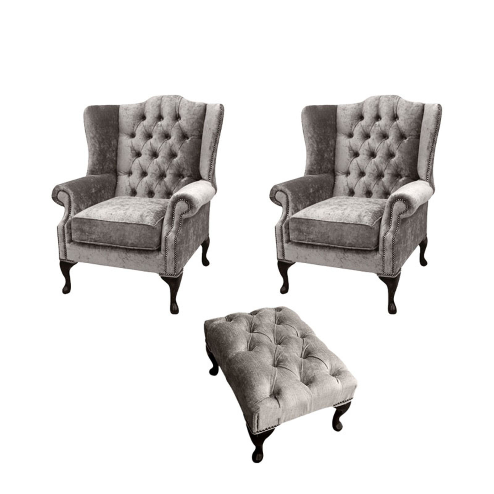 Our review of the Chesterfield 2 X Mallory Wing Chairs Footstool Boutique Beige Velvet Sofa Suite Offer