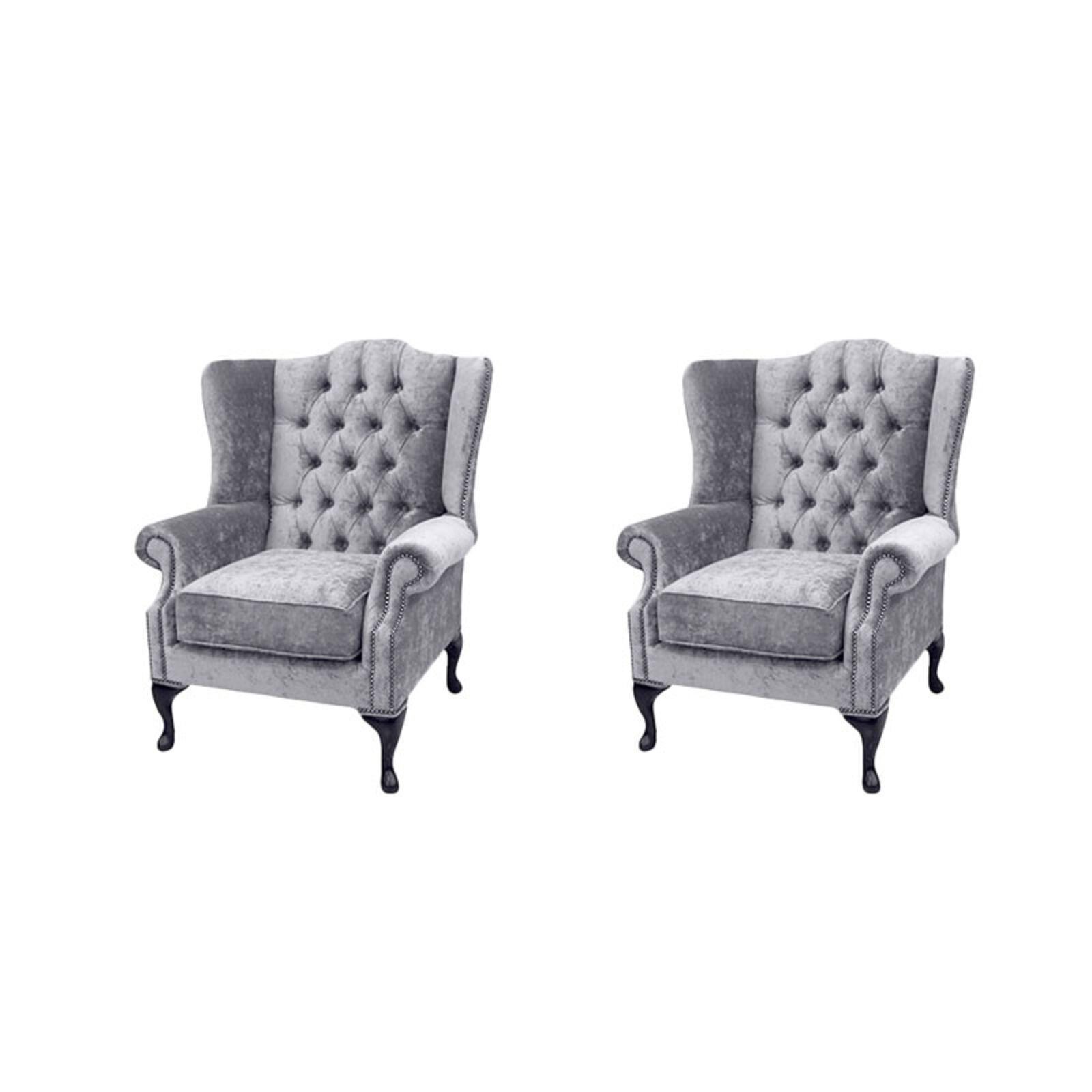 Chesterfield 2 X Mallory Wing Chairs Perla Illusions Velvet Sofa Suite Offer