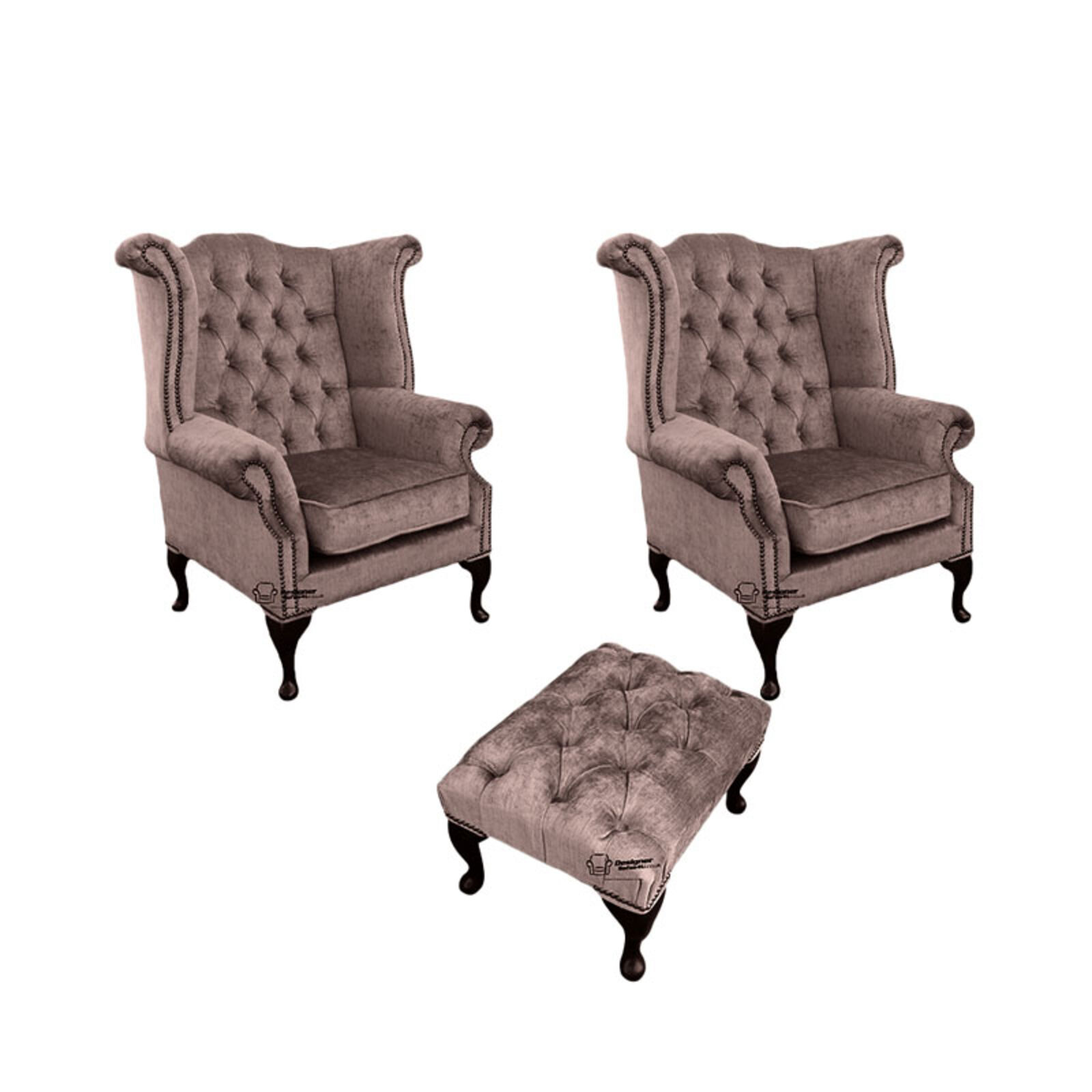 Chesterfield 2 X Queen Anne Chairs Footstool Harmony Charcoal Velvet Sofa Suite Offer