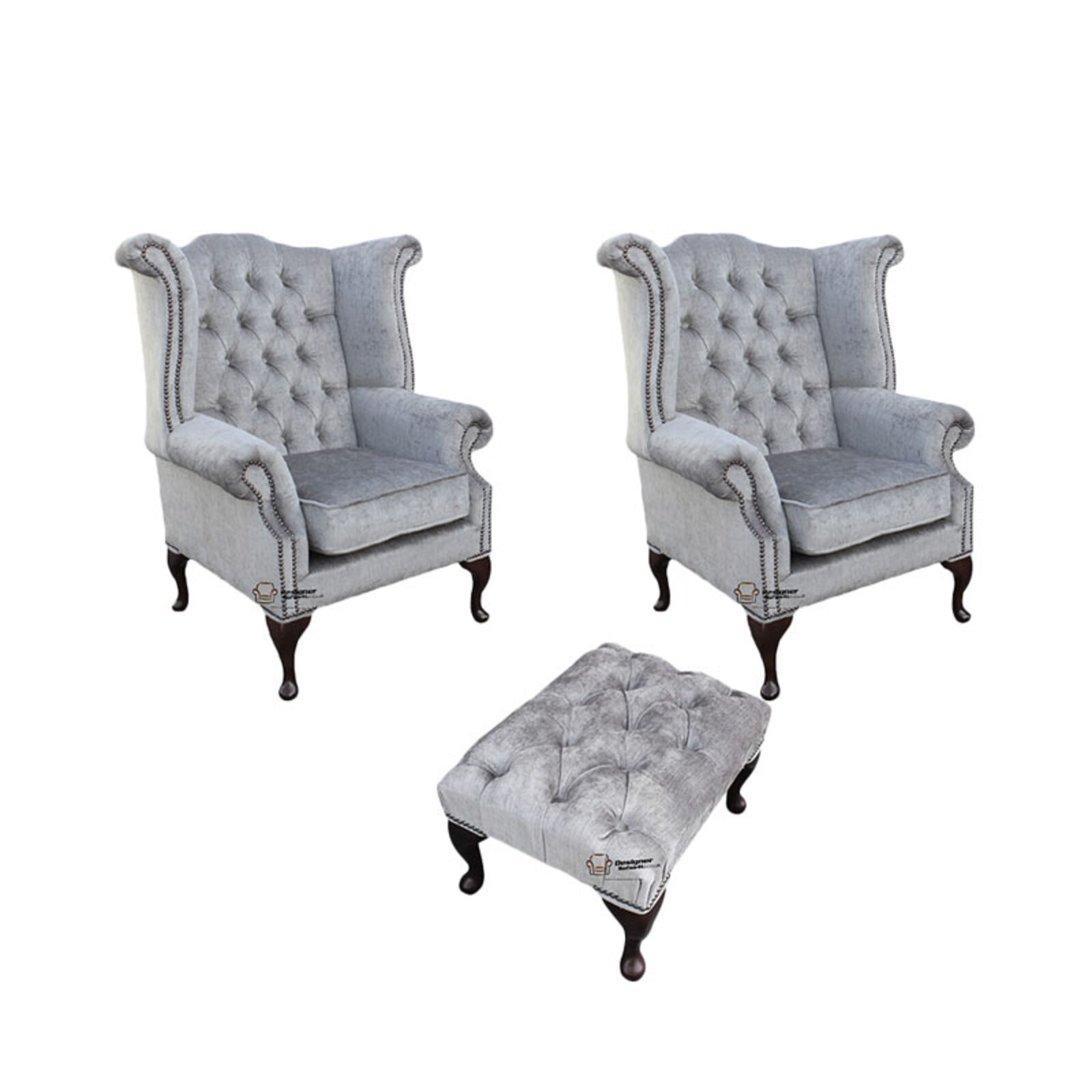 Chesterfield 2 X Queen Anne Chairs Footstool Perla Illusions Velvet Sofa Suite Offer