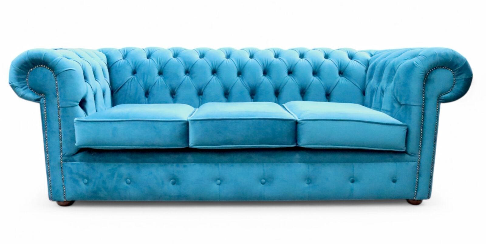 Our review of the Chesterfield 3 Seater Settee Amalfi Peacock Blue Velvet Sofa Offer