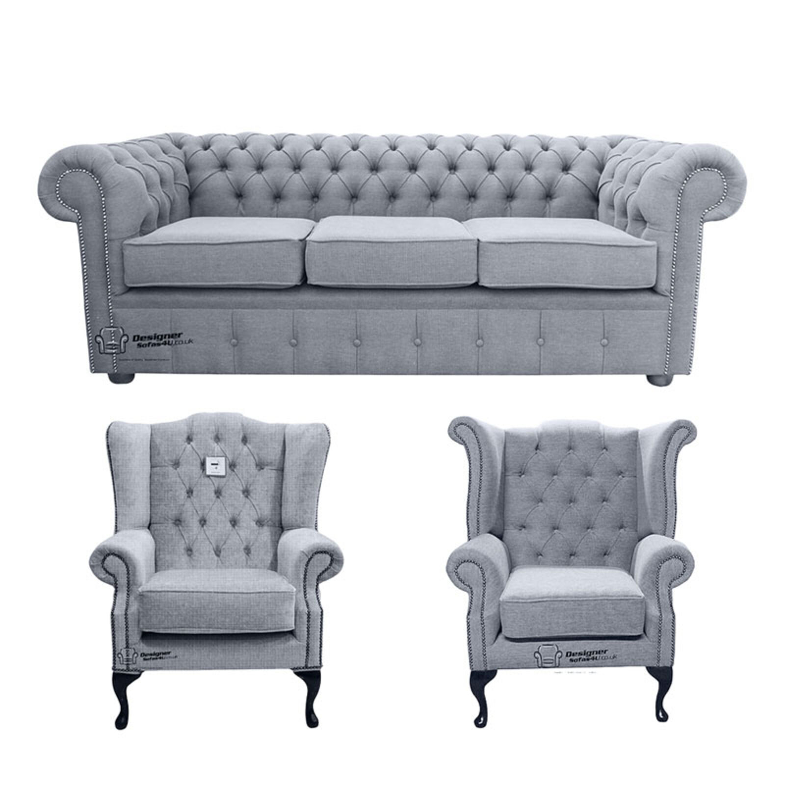 Chesterfield 3 Seater Sofa 1 X Mallory Wing Chair 1 X Queen Anne Wing Chair Verity Plain Steel Fabric Sofa Suite Offer
