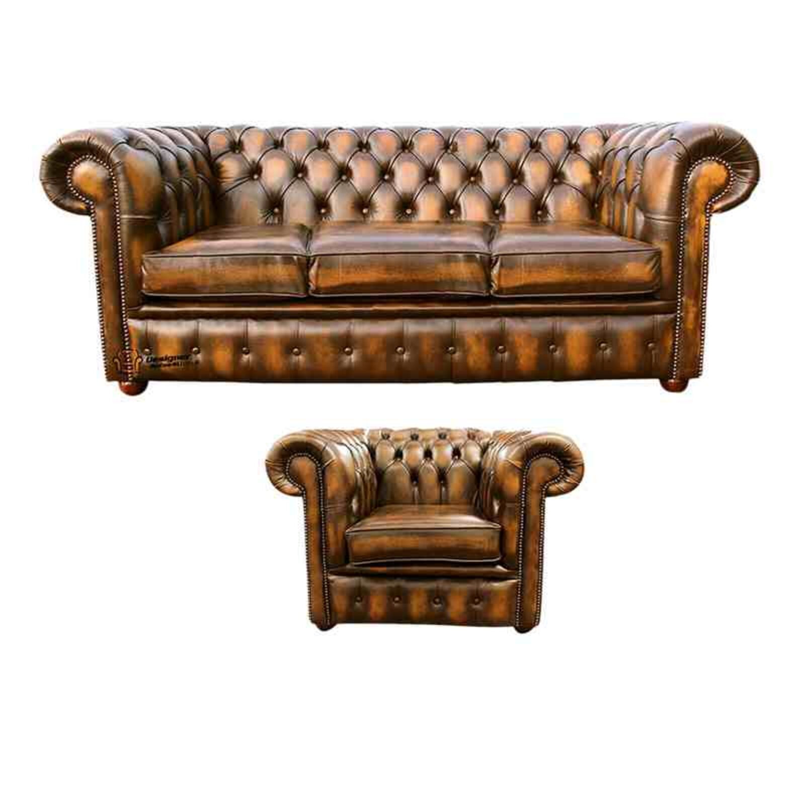 Chesterfield 3 Seater Sofa Club Chair Leather Sofa Suite Offer Antique Gold