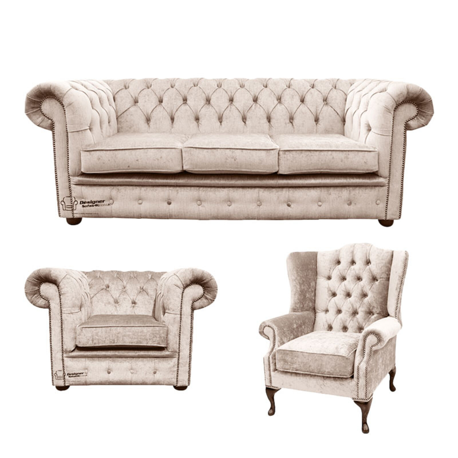Chesterfield 3 Seater Sofa Club Chair Mallory Wing Chair Harmony Ivory Velvet Sofa Suite Offer