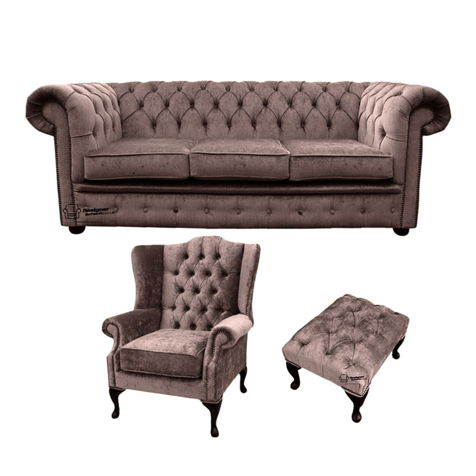 Chesterfield 3 Seater Sofa Mallory Wing Chair Footstool Harmony Charcoal Velvet Sofa Suite Offer