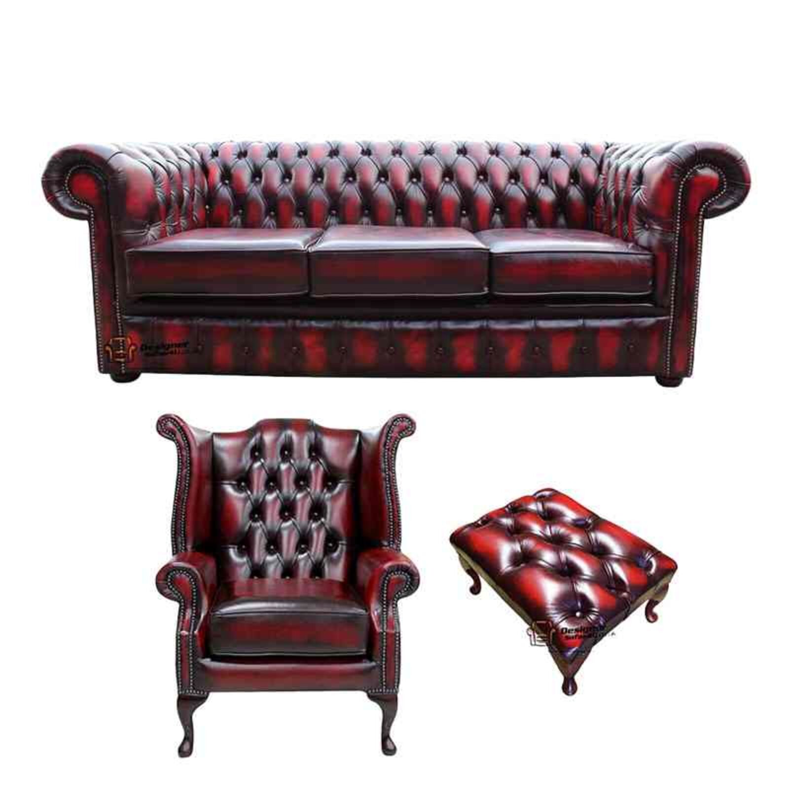 Our review of the Chesterfield 3 Seater Sofa Queen Anne Chair Footstool Leather Sofa Suite Offer Antique Oxblood