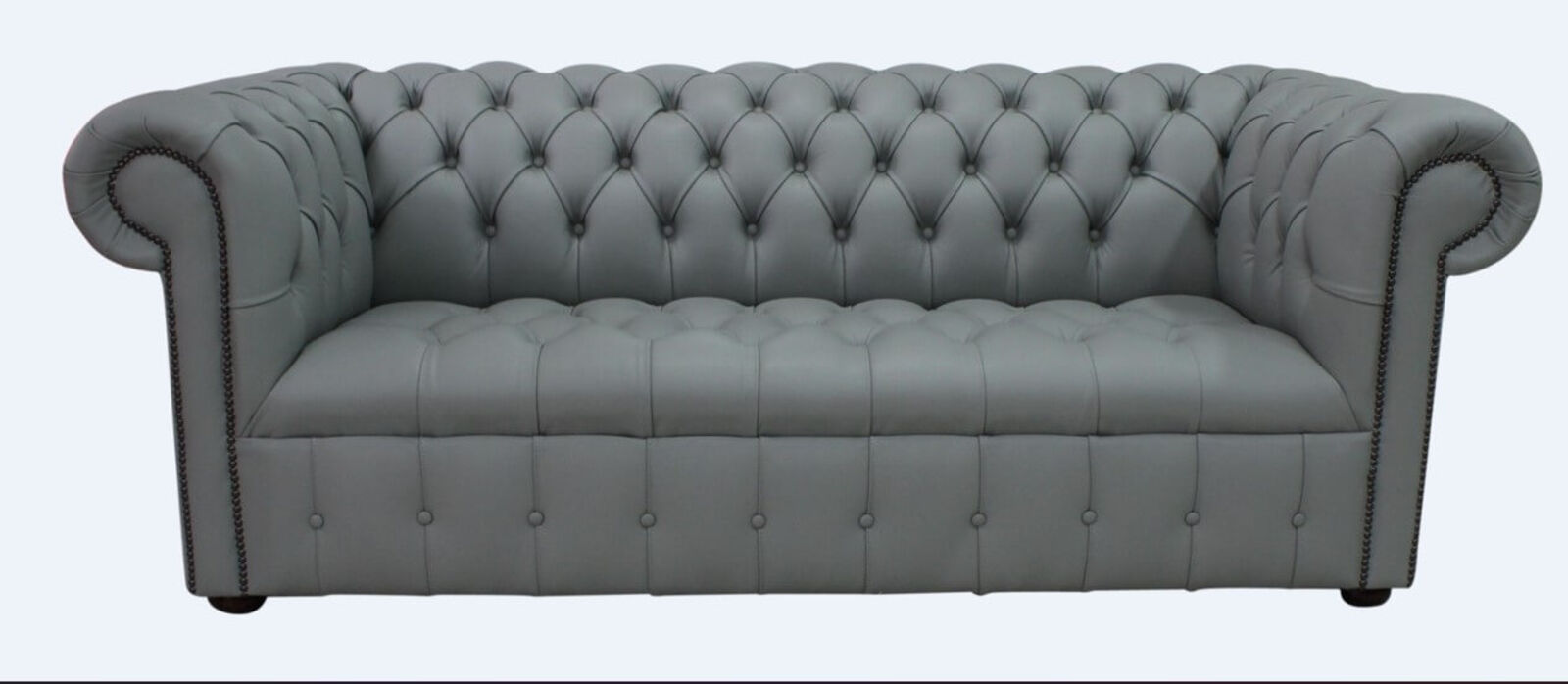 Chesterfield 3 Seater Sofa Settee Buttoned Seat Piping Grey Leather Sofa Offer