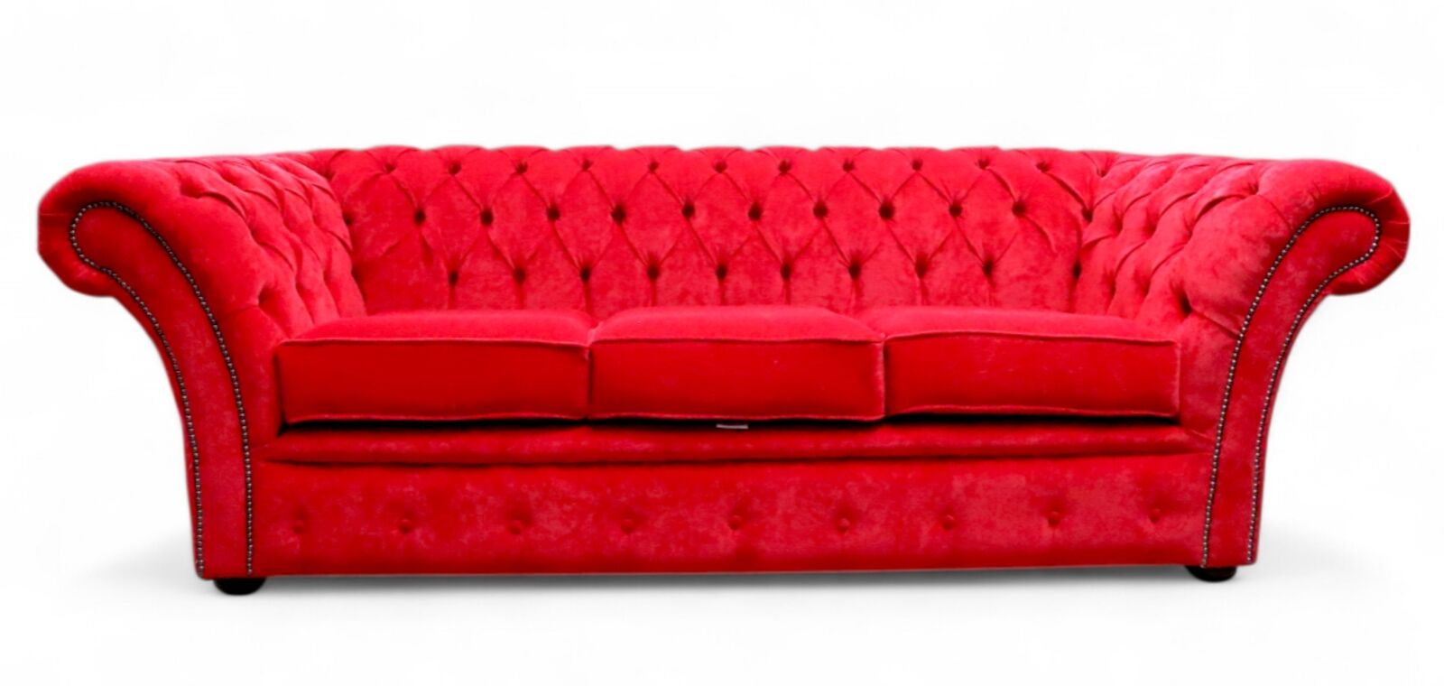 Chesterfield Balmoral 3 Seater Sofa Settee Pimlico Rouge Red Fabric - A stunning design, evolved from the original Chesterfield designs of the 1800's. - Regarded by many as the perfect Chesterfield Sofa, with hand buttoned sofa, renaissance hand studding and raised mahogony feet. Standard Product Specification - The sofa seat interiors are fully foam. - Individually hand buttoned. - Chesterfield sofas are available with solid wooden bun feet. - Serpentine high tensile zig zag springs. - Frames constructed from solid hardwood. - All cushions are zipped and removable. Other Product Info - Individual seating as standard. i.e. 3 seater has 3 cushions, 2 seater has 2 cushions etc. - Chesterfield sofas have a firmer foam package than the contemporary leather sofas. 3 Seat Sofa Dimensions : H 75cm x D 89cm x W 225cm apprx. Dimensions-3-seater-Balmoral-sofa: We understand that purchasing furniture is a household decision. Therefore in order to make this