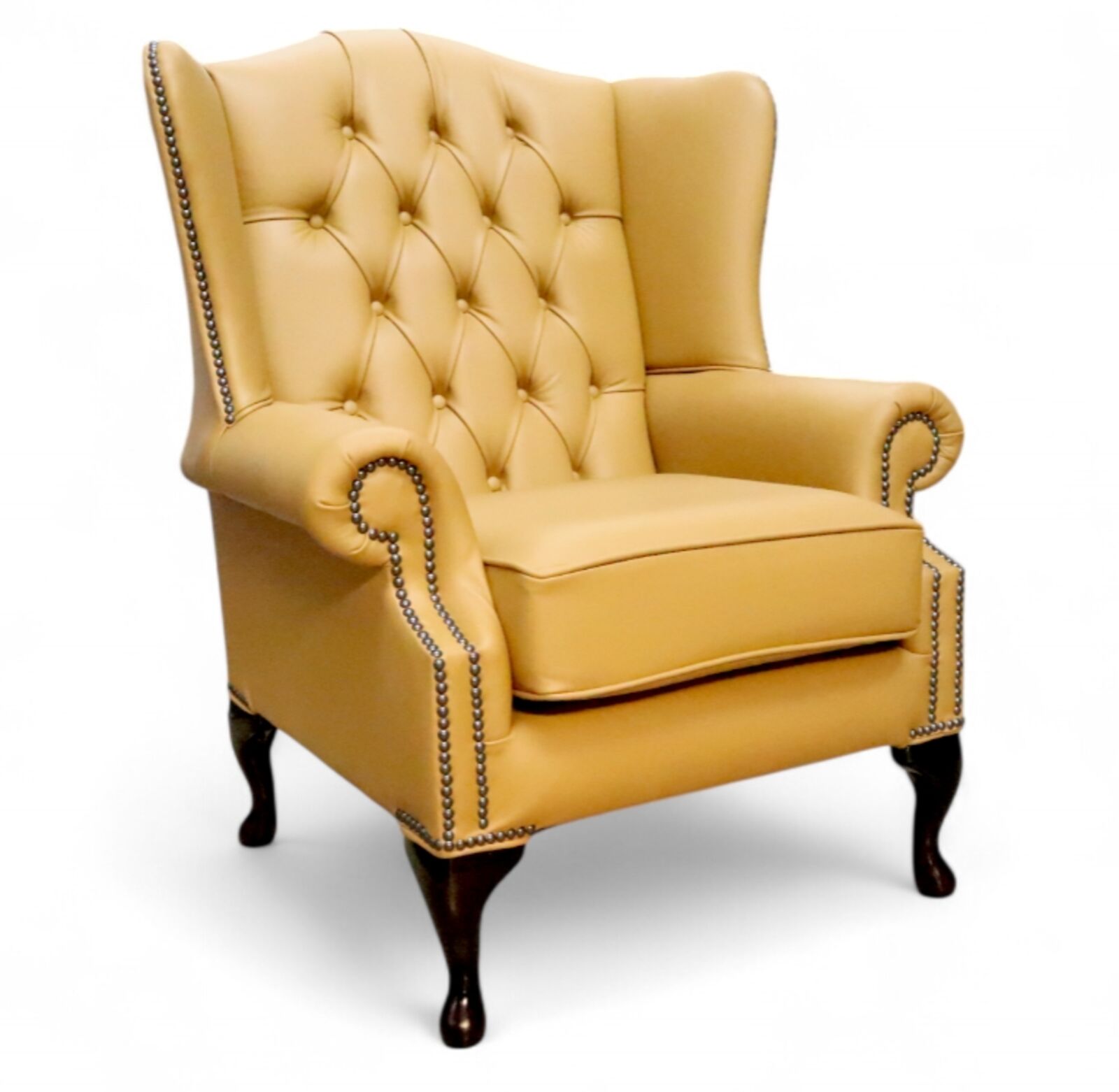 HANDCRAFTED IN ENGLAND Chesterfield Mallory Flat Wing High Back Chair Our winged high-back Chesterfield Mallory Flat Wing Armchair with exposed hardwood leg detail. A very popular look in the Flat Wing Style This Chesterfield has a high back for additional support and comfort. This piece would bring flair to any home or office space. - Hand made in Premium Leather - Non Tropical Screwed and glued hardwood frame made in house - Upholstered by craftsmen - Real wood show feet Queen Anne legs - Hand studded Front and Wing Facings - From construction of the frame to filling in the cushions all is completed in house - Individual seating options (Soft, Medium, Firm) - Payment Option 50% Deposit Rest of Balance On Delivery - FREE Swatch Service - 12 Month Manufacturers Guarantee - 10 Year Manufacture Guarantee on Framework - Manufactured In England - Worldwide delivery Available What Is Premium Leather? Our Premium Leather is a high quality grain hide wh