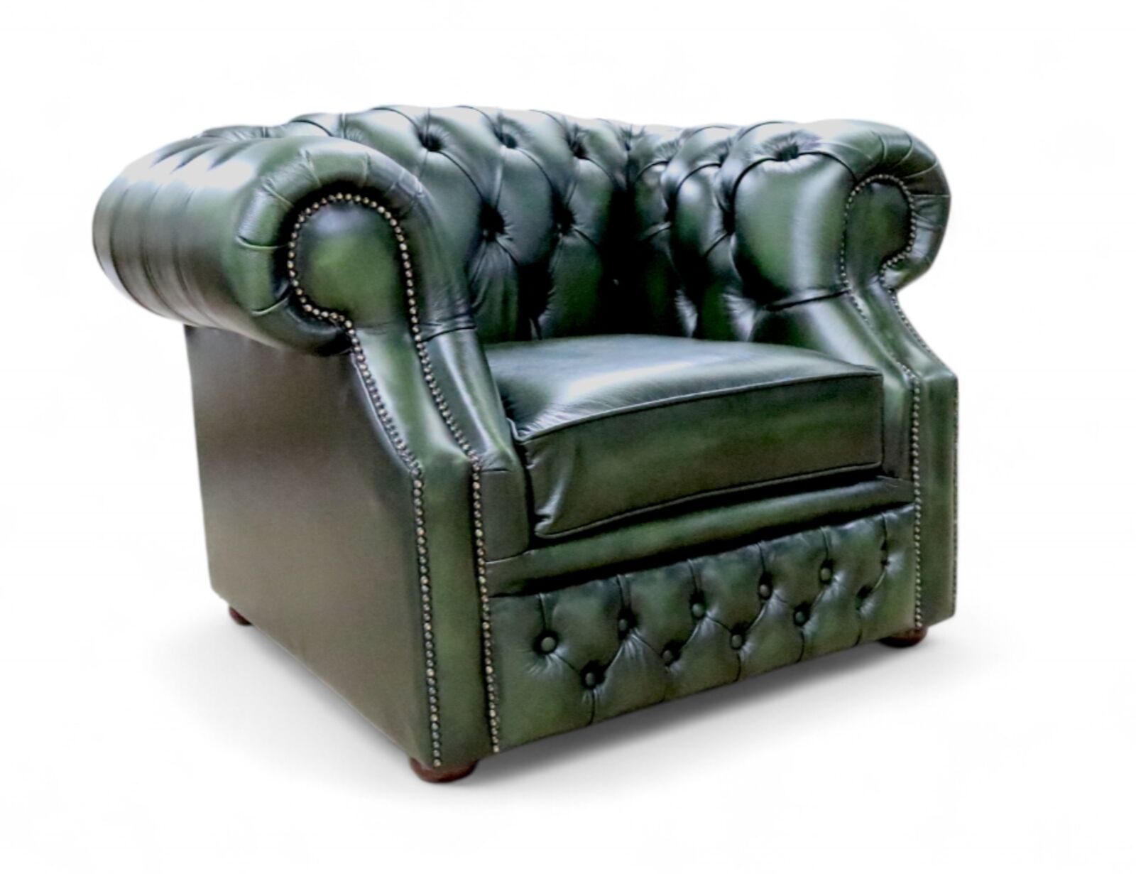 HANDCRAFTED IN ENGLAND The Classic 1 Seater English Chesterfield Buckingham Hump Back style. Deep buttoned arms and back complemented with a double buttoned front border. The scroll fronted arms are attractively embellished with lines of individual stud nails. An undoubted winner in any room from the cottage to the boardroom. A classic of its kind. Vintage British. 1 Seater Our classic Low-Back Chesterfield Queen Anne armchair sofa with exposed hardwood leg detail. A very popular look in the Chesterfield style. Club Chair Dimensions : H 81cm x D 89cm x W 108cm apprx. 2-Man-delivery tc(1): We understand that purchasing furniture is a household decision. Therefore in order to make this stress free, we offer all our customers: - FREE swatches to help decide on colours - FREE impartial advice on the suitability of products - Manufacture Bespoke Items to fit the space you have available Your Payment Options - Paying by Debit Or Credit Card Or Paypal -