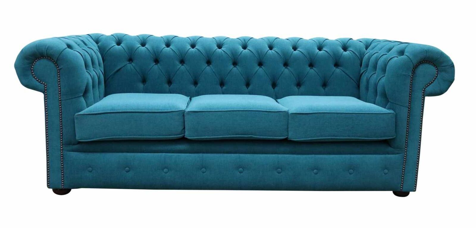 Chesterfield Cantare Teal Blue Easy Clean Fabric Sofa