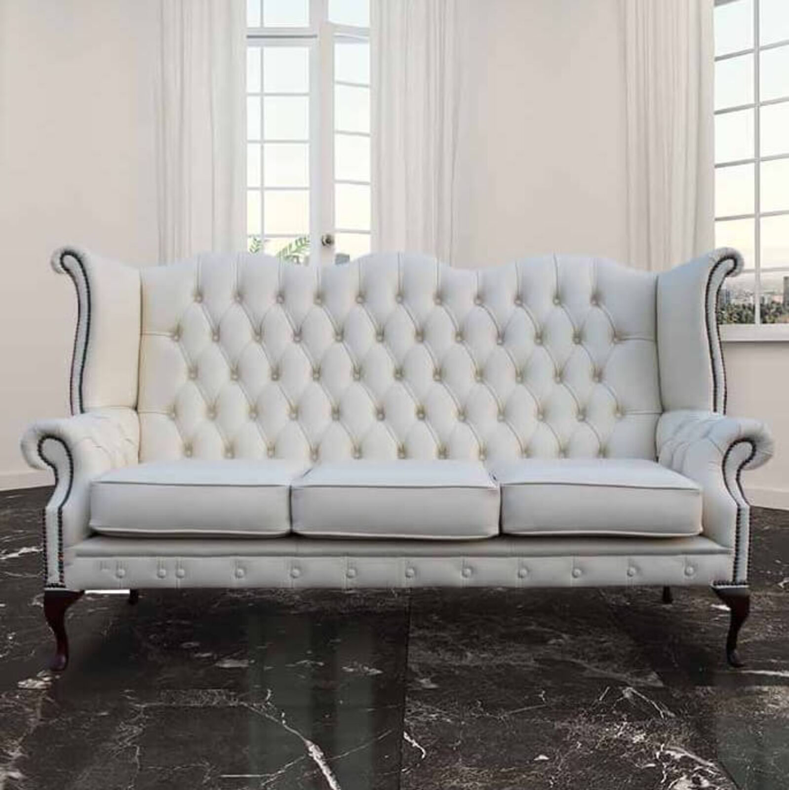 Chesterfield Chatsworth 3 Seater Queen Anne High Back Wing Chair Uk Manufactured White
