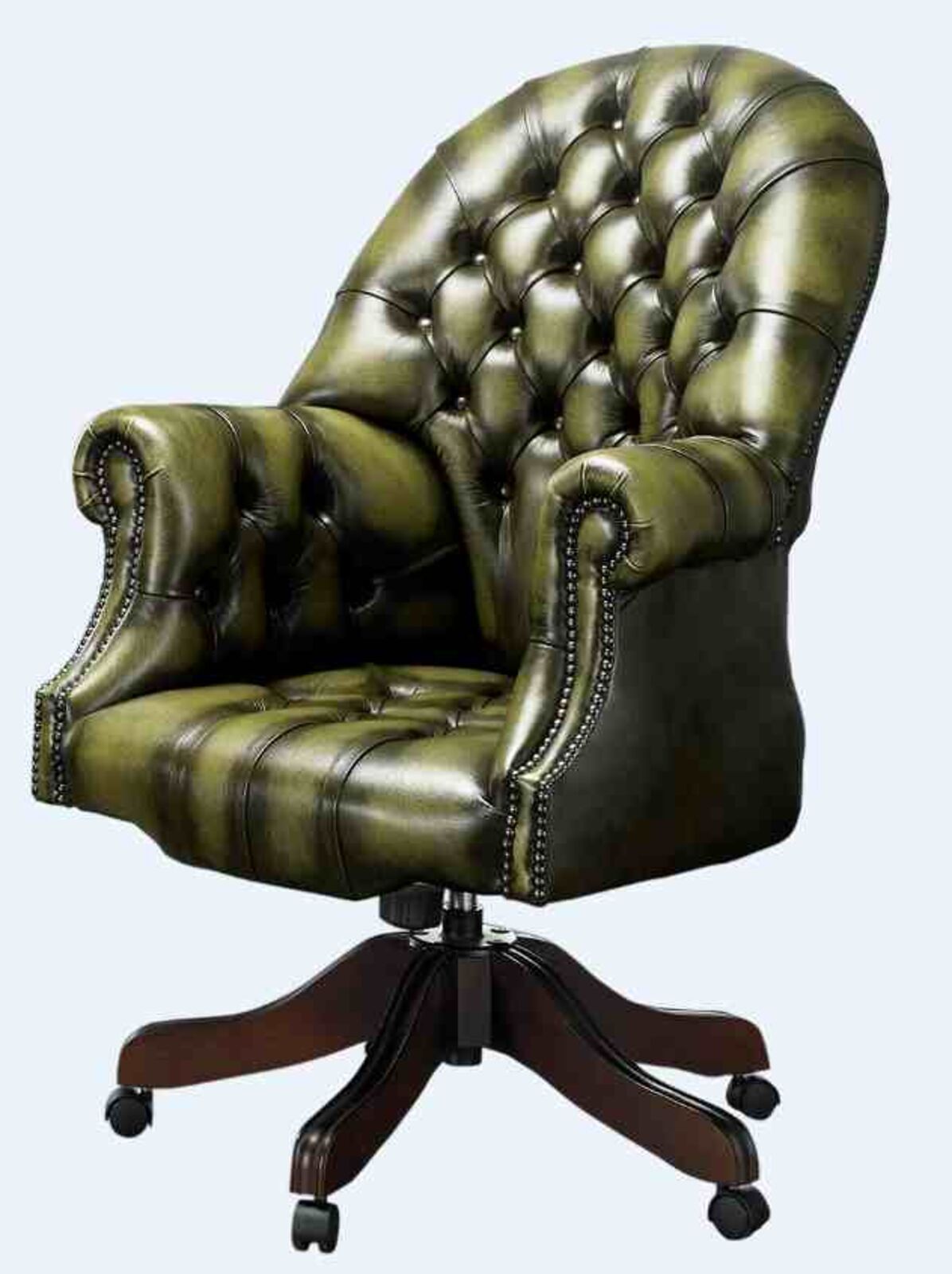Chesterfield Directors Chair Antique Olive Real Leather Office Chair