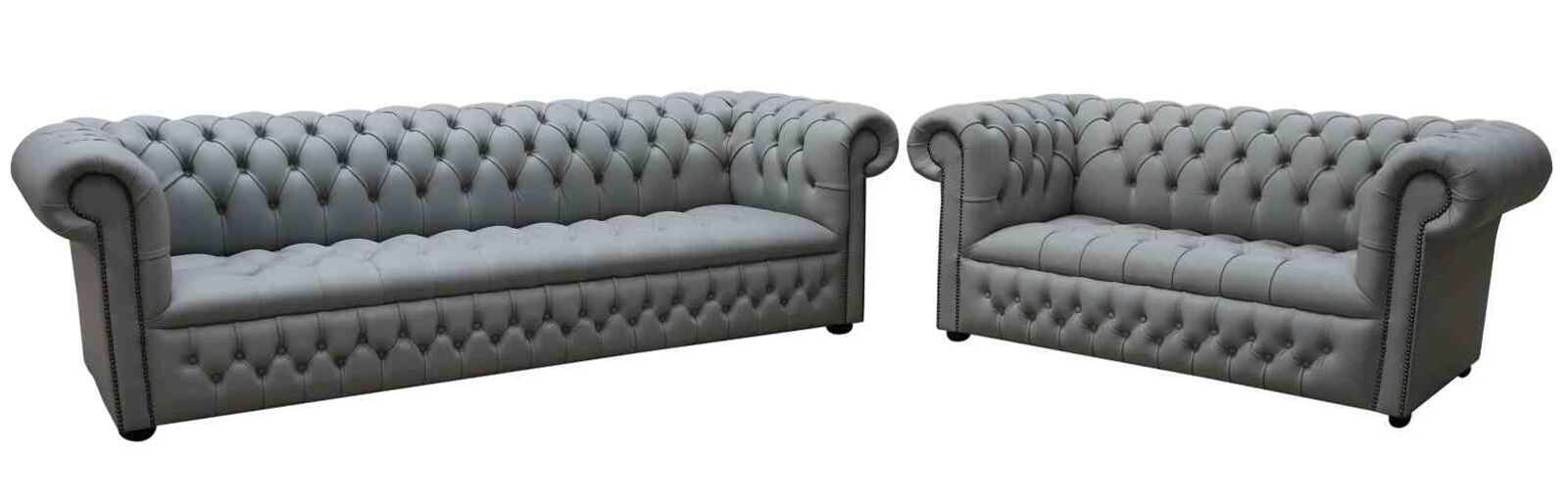Chesterfield Edwardian 4 2 Seater Settee Buttoned Seat Shelly Silver Grey Leather Sofa Offer