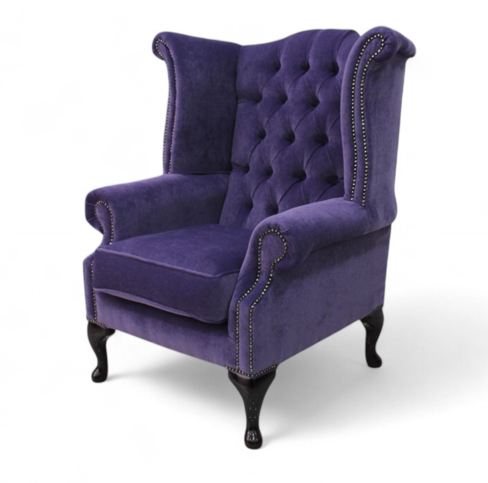 Chesterfield Fabric Queen Anne High Back Wing Chair Pimlico Lupin