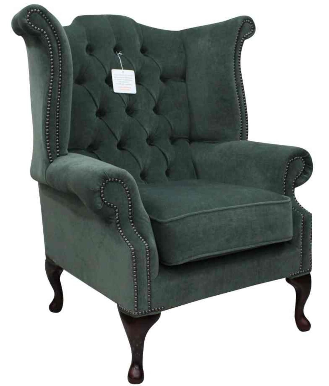 Our review of the Chesterfield Fabric Queen Anne High Back Wing Chair Pimlico Ocean Green
