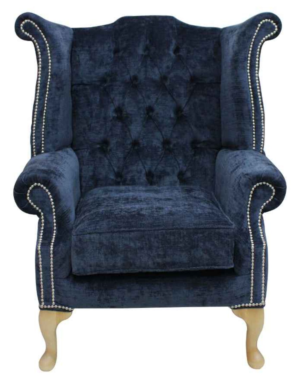 Chesterfield Fabric Queen Anne High Back Wing Chair Velluto Oxford