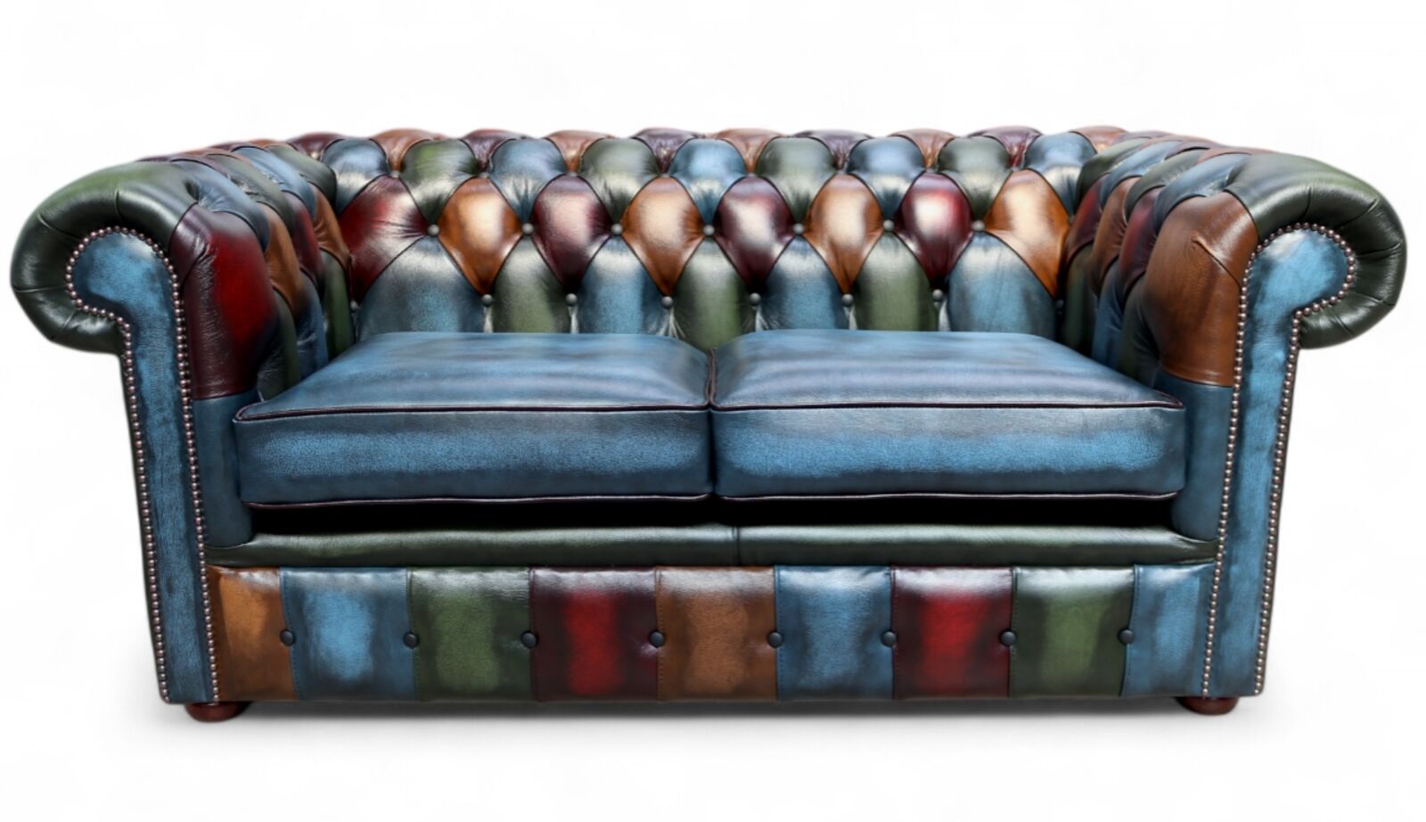 We love sophisticated living, and think that this Chesterfield Patchwork 2 Seater Settee Antique Blue Real Leather Sofa really hits the mark!