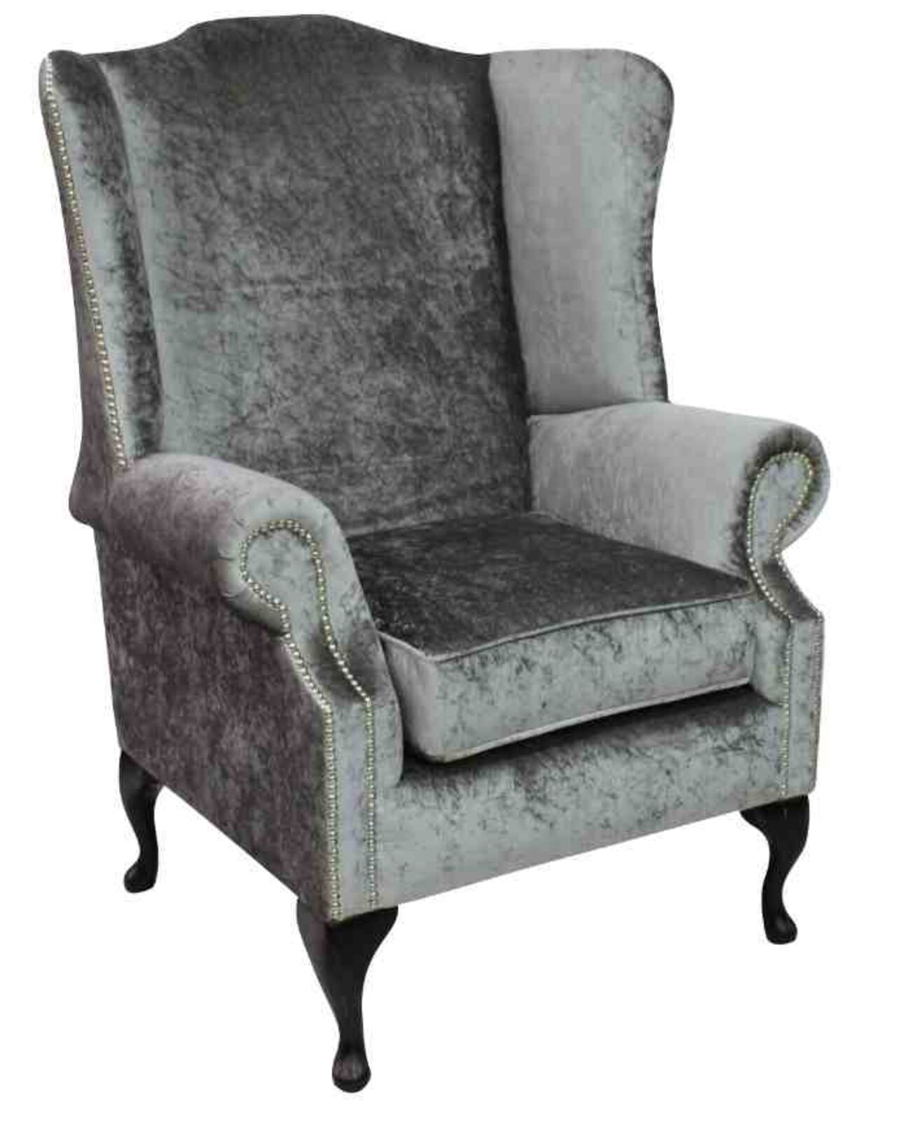 HANDCRAFTED IN ENGLAND Chesterfield Prince's Flat Wing Queen Anne Wing Chair Our winged high-back Chesterfield Queen Anne Armchair with exposed hardwood leg detail. A very popular look in the Queen Anne Style THIS IS A ARMCHAIR FOR A TALLER PERSON This Chesterfield has a high back for additional support and comfort. This piece would bring flair to any home or office space. - Hand made in Shimmer Silver Velvet - Suitable For the Larger Person - Non Tropical Screwed and glued hardwood frame made in house - Upholstered and buttoned by craftsmen - Real wood show feet Queen Anne legs - Hand studded Front and Wing Facings - From construction of the frame to filling in the cushions all is completed in house - Individual seating options (Fibre, Medium, Firm) - Payment Option 50% Deposit Rest of Balance On Delivery - FREE Swatch Service - 12 Month Manufacturers Guarantee - 10 Year Manufacture Guarantee on Framework - Manufactured In England - Worldwide de