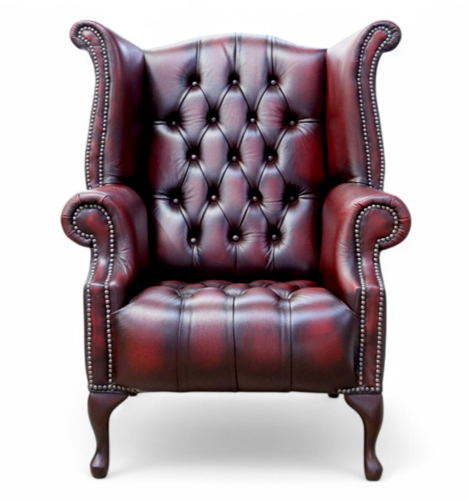 We think you deserve a treat, and you can’t get much better than this Chesterfield Queen Anne High Back Wing Chair Buttoned Seat Designersofas4u.