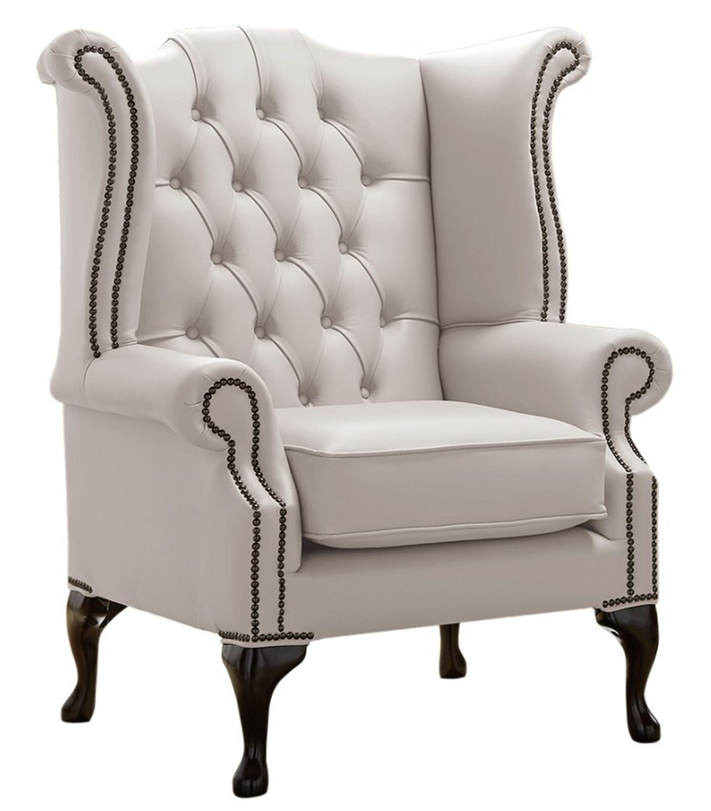 Chesterfield Queen Anne Leather Wing Chair Our winged high-back Chesterfield Mallory Flat Wing Armchair with exposed hardwood leg detail. A very popular look in the Flat Wing Style This Chesterfield has a high back for additional support and comfort. This piece would bring flair to any home or office space. - Hand made in Premium Leather - Non Tropical Screwed and glued hardwood frame made in house - Upholstered and buttoned by craftsmen - Real wood show feet Queen Anne legs - Hand studded Front and Wing Facings - From construction of the frame to filling in the cushions all is completed in house - Individual seating options (Soft, Medium, Firm) - Payment Option 50% Deposit Rest of Balance On Delivery - FREE Swatch Service - 12 Month Manufacturers Guarantee - 10 Year Manufacture Guarantee on Framework - Manufactured In England - Worldwide delivery Available What Is Premium Leather? Our Premium Leather is a high quality grain hide which has been c