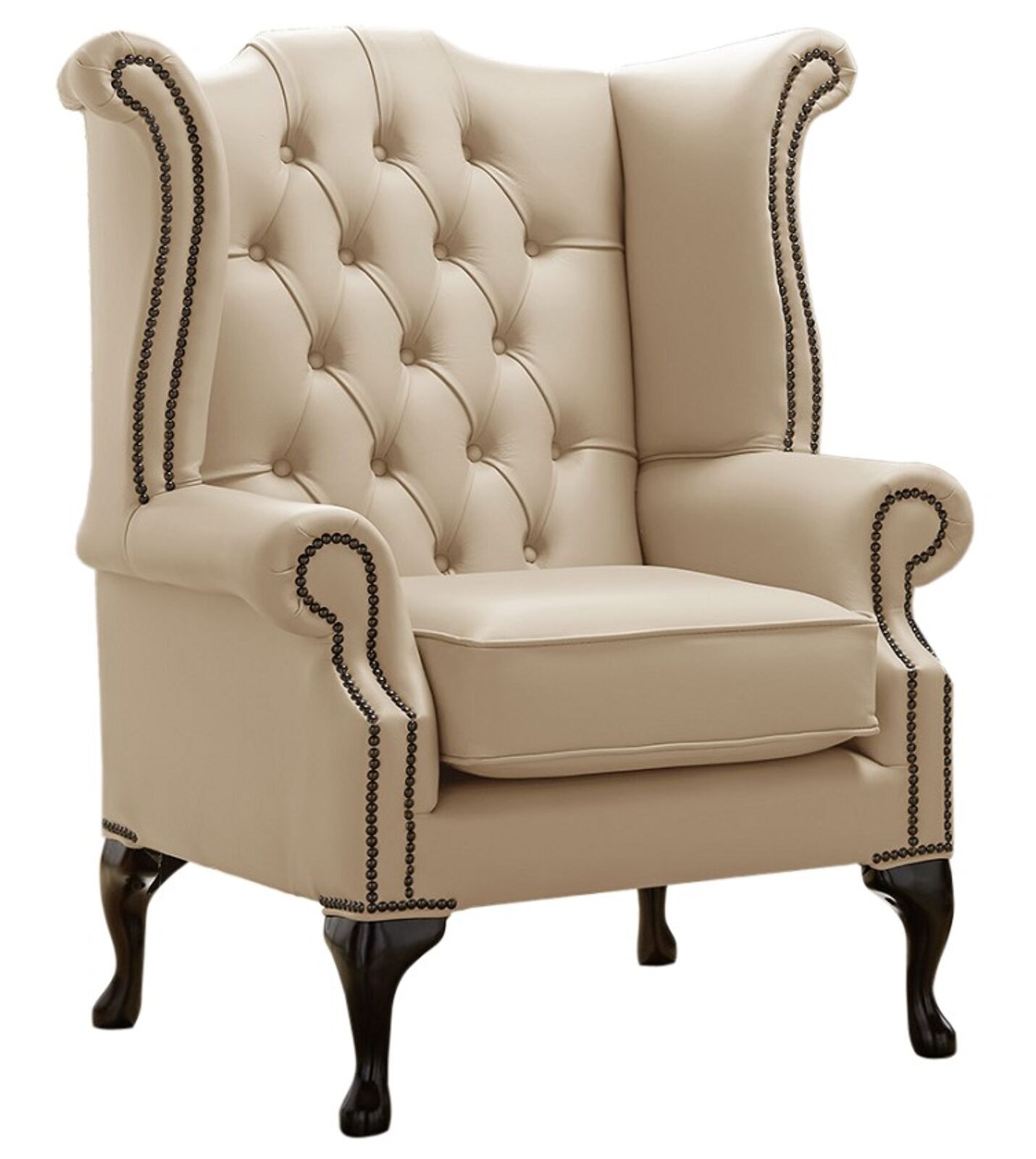 Chesterfield Queen Anne Leather Wing Chair Our winged high-back Chesterfield Mallory Flat Wing Armchair with exposed hardwood leg detail. A very popular look in the Flat Wing Style This Chesterfield has a high back for additional support and comfort. This piece would bring flair to any home or office space. - Hand made in Premium Leather - Non Tropical Screwed and glued hardwood frame made in house - Upholstered and buttoned by craftsmen - Real wood show feet Queen Anne legs - Hand studded Front and Wing Facings - From construction of the frame to filling in the cushions all is completed in house - Individual seating options (Soft, Medium, Firm) - Payment Option 50% Deposit Rest of Balance On Delivery - FREE Swatch Service - 12 Month Manufacturers Guarantee - 10 Year Manufacture Guarantee on Framework - Manufactured In England - Worldwide delivery Available What Is Premium Leather? Our Premium Leather is a high quality grain hide which has been c