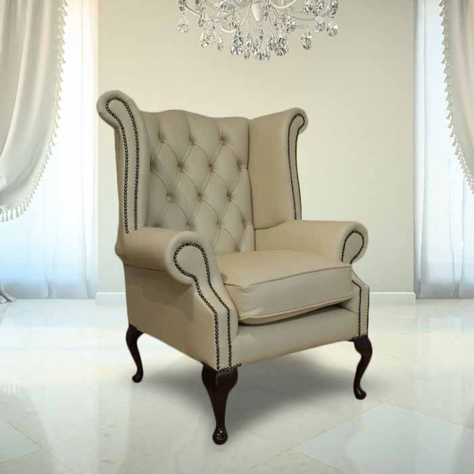 Chesterfield Queen Anne High Back Wing Chair Uk Manufactured Ivory