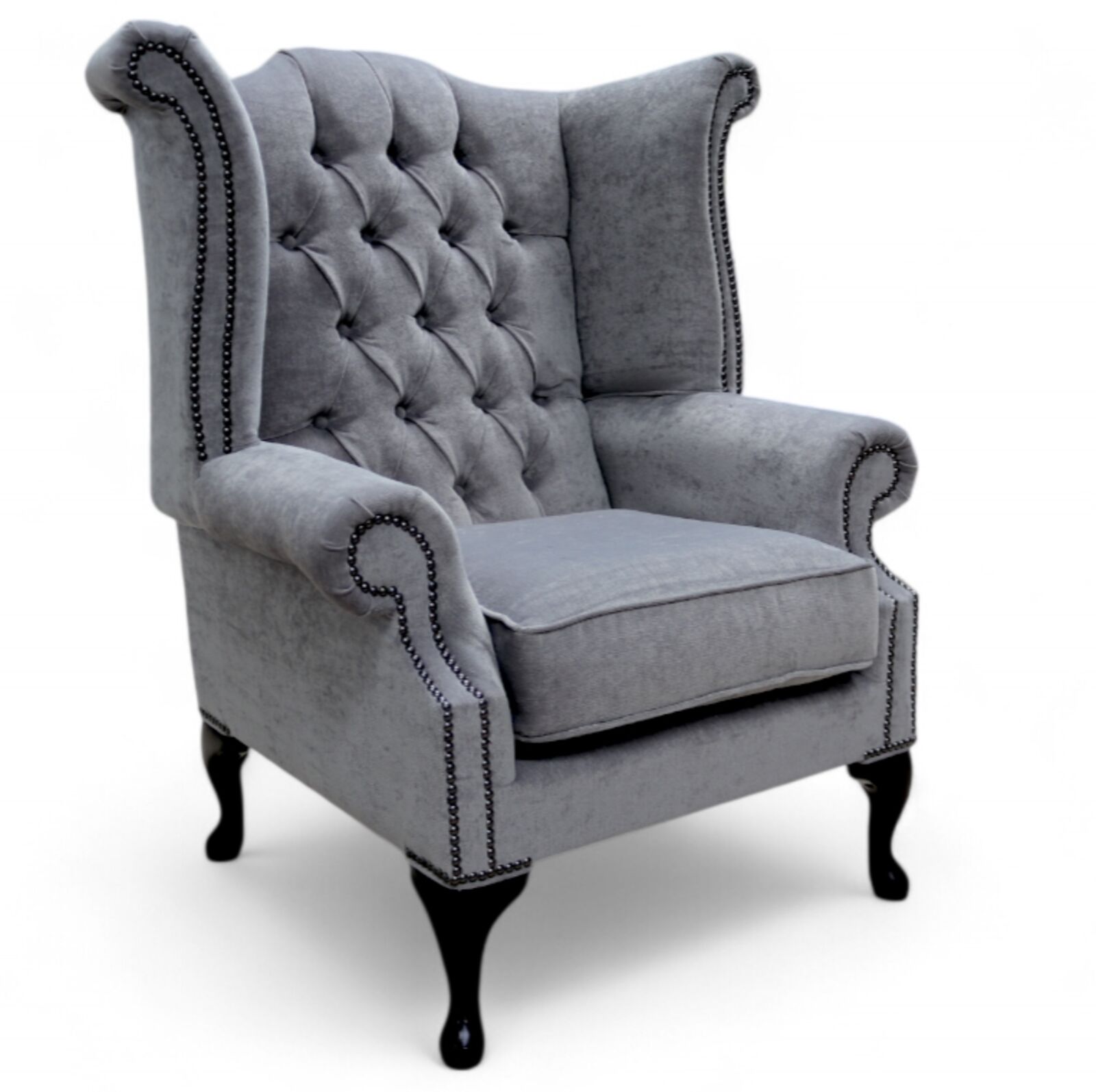 Chesterfield Queen Anne High Wing Back Pimlico Grey Fabric Chair