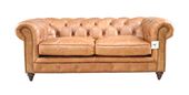 Earle Chesterfield Vintage Caramel Tan Nappa Leather Sofa 2 Seater