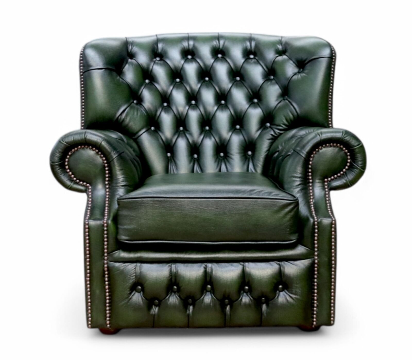 HANDCRAFTED IN ENGLAND Chesterfield Monks Armchair Our Monks Armchair Chesterfield with exposed hardwood leg detail. A very popular Traditional Piece of furniture This Chesterfield has a high back for additional support and comfort. This piece would bring flair to any home or office space. - Hand made in Antiqued Green Leather carefully rubbed to highlight the appearance of ageing - Non Tropical Screwed and glued hardwood frame made in house - Upholstered and buttoned by craftsmen - Real wood show feet - Hand studded Front and Wing Facings - From construction of the frame to filling in the cushions all is completed in house - Individual seating options (Fibre, Medium, Firm) - Payment Option 50% Deposit Rest of Balance On Delivery - FREE Swatch Service - 12 Month Manufacturers Guarantee - 10 Year Manufacture Guarantee on Framework - Manufactured In England - Worldwide delivery Available - 5 Year Additional Warranty Available What Is Antiqued Leath