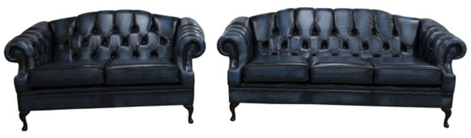 Victoria 3 2 Seater Chesterfield Leather Sofa Settee Antique Blue Leather