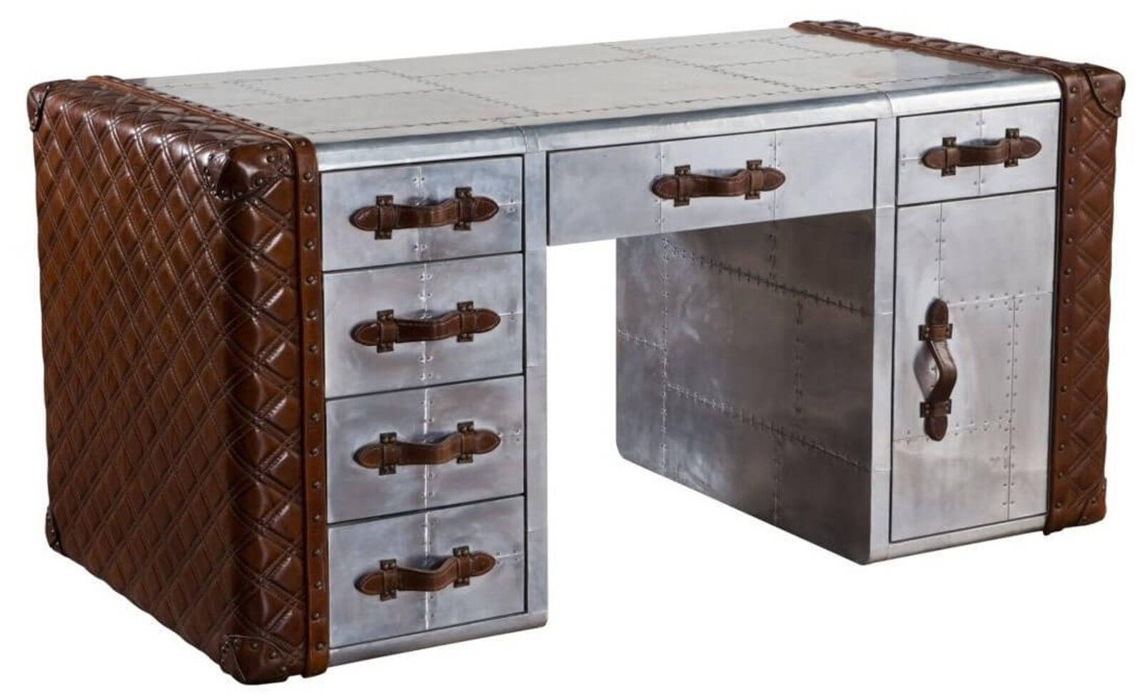 From the UK s leading Vintage Leather Furniture Vintage Desk Aviator Aluminium & Leather Dimensions (CM) Desk : L162 X W85 X H80 Apprx. What is Vintage Distressed Leather? The Vintage Distressed Leather Collection is meticulously crafted, perfectly preserves every inch of natural ageing marks, revealing not only the story of time but also the unique classic charm. Each piece is a Limited Edition Worldwide, exceptionally unique, showcasing your distinct taste and status symbol. We understand that purchasing furniture is a household decision. Therefore in order to make this stress free, we offer all our customers: - FREE swatches to help decide on colours - FREE impartial advice on the suitability of products - Manufacture Bespoke Items to fit the space you have available Our Promise: We are offering High Quality and Incredibly Comfortable bespoke furniture at low prices competitive pricing: Your Payment Options - Paying by Debit Or Credit Card Or