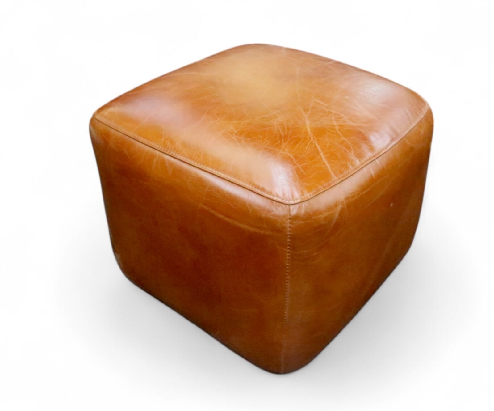 From the UK s leading Vintage Leather Furniture Stockist Vintage Leather Footstool Pouffe, Available in a wide range of vintage distressed colours (Brown, Black, Tobacco, Rouge, Tan) - Exclusive Vintage Collection - Best Price Promise - Distressed Vintage Real Leather - FREE Swatches Available - Hand Crafted Furniture Dimensions (CM) Footstool Pouffe : L55 X W55 X H44 Apprx. What is Vintage Distressed Leather? The Vintage Distressed Leather Collection is meticulously crafted, perfectly preserves every inch of natural ageing marks, revealing not only the story of time but also the unique classic charm. Each piece is a Limited Edition Worldwide, exceptionally unique, showcasing your distinct taste and status symbol. We understand that purchasing furniture is a household decision. Therefore in order to make this stress free, we offer all our customers: - FREE swatches to help decide on colours - FREE impartial advice on the suitability of products -
