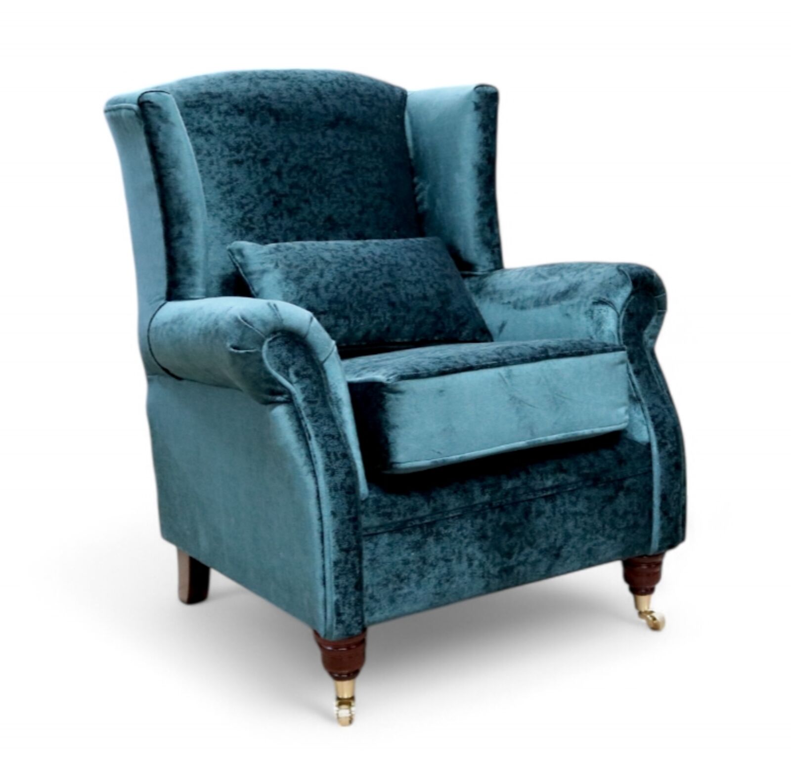 This traditionally styled wing chair has polyester fibre seat cushion and high tensile comfy cushions. Featuring hardwood Turned Mahogany Brass legs with rollers. Upholstered in Luxurious Designer Fabric exclusively available from Designer Sofas4u. If you are looking for style and reliability, our ever popular wing chair has come to define what traditional styling is all about. Designer Sofas4U Wing Chair also available in customers own fabric. If you would like to make use of our NEXT DAY FREE SWATCH SERVICE please contact us by telephone or email with the name of the product you are interested in. Wings Chair Dimensions : H 98cm x W 80cm x D 80cm apprx. Dimensions-1-seater-Southwold-Fireside-Chair: We understand that purchasing furniture is a household decision. Therefore in order to make this stress free, we offer all our customers: - FREE swatches to help decide on colours - FREE impartial advice on the suitability of products - Manufacture B